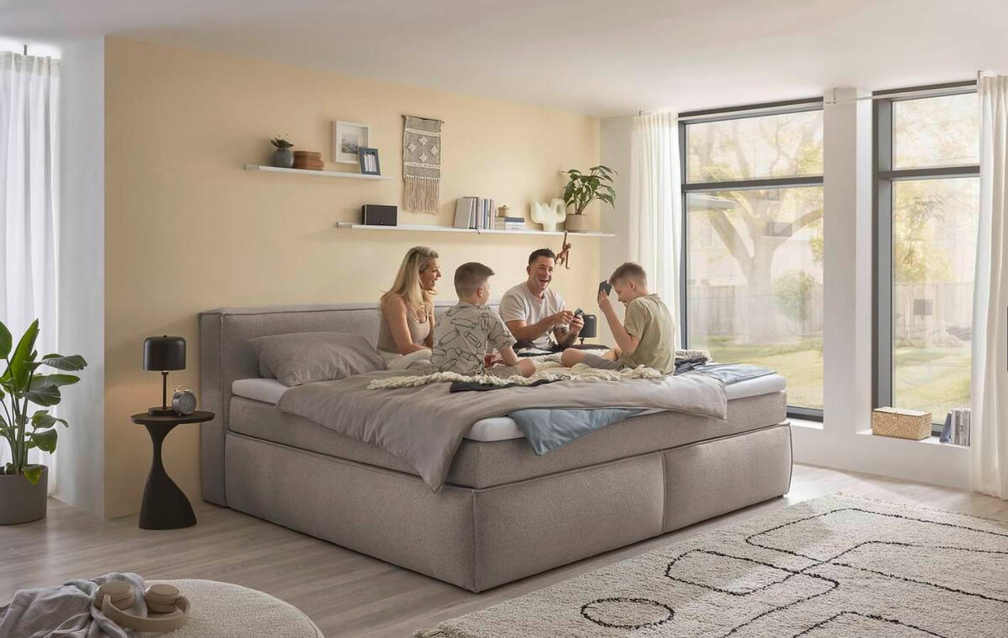 BOXSPRINGBETT 160/200 cm, in Dunkelgrau, Matratze, gepolstertes Kopfteil, H3 + H3 = fest