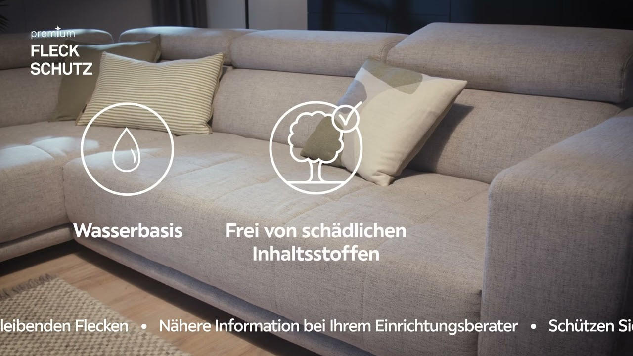 Premium-Fleckschutz ist ein Hightech-Produkt, das auf Wasser basiert. Die atmungsaktiven Eigenschaften des Bezugsstoffs bleiben bei Verwendung unverändert!