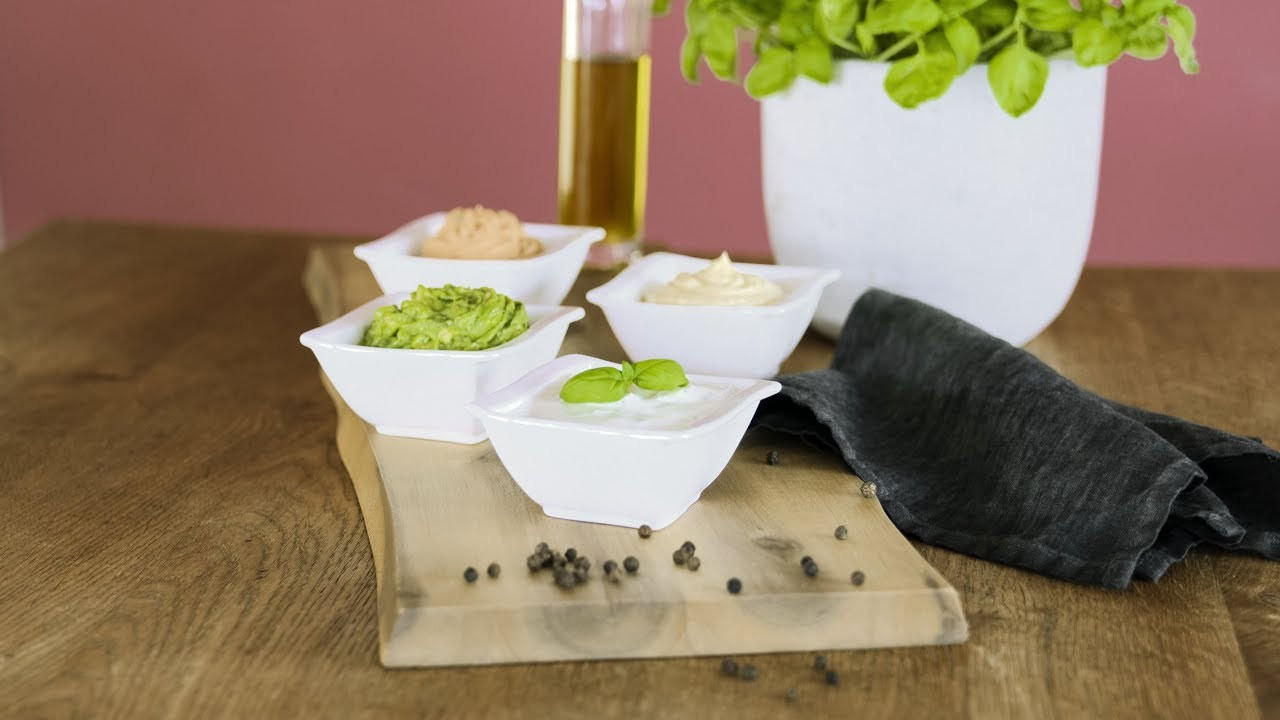 1. Die Avocados halbieren und entsteinen. Das Fruchtfleisch mit einem Löffel aus der Schale lösen und zusammen mit dem Limettensaft in einer Schüssel mit einer Gabel zermusen. Alternativ Avocado, Limettensaft, Knoblauch und Chili mit dem Mixer grob pürieren.