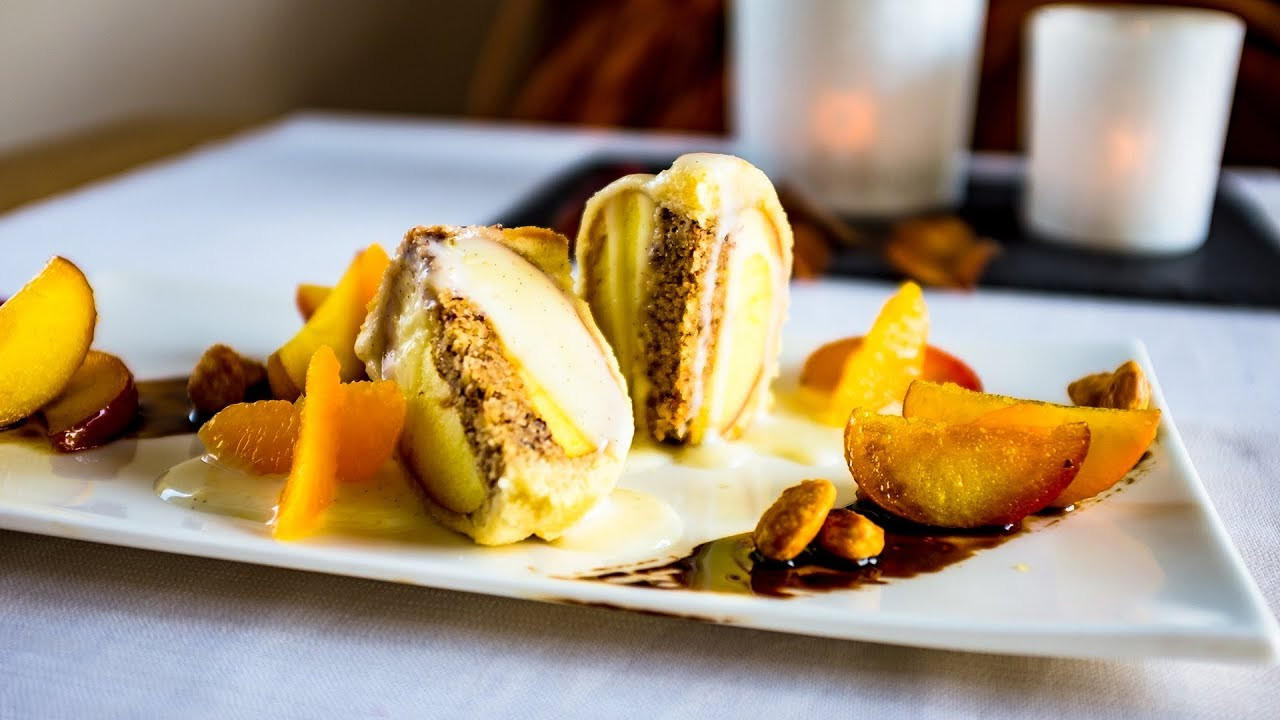 - Die Äpfel waschen und das Kerngehäuse ausstechen. Für die Füllung Haselnüsse und Amaretto mischen. Die Äpfel damit füllen.