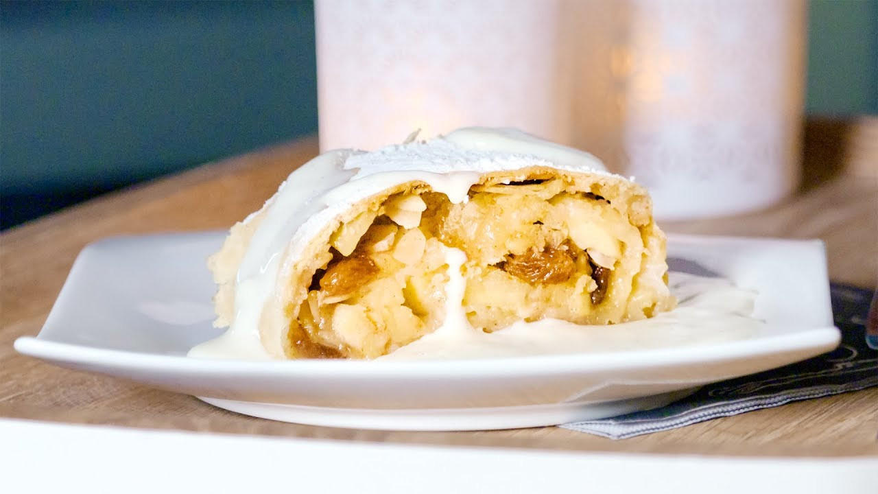 Wie wird der Apfelstrudel mit Vanillesoße zubereitet?