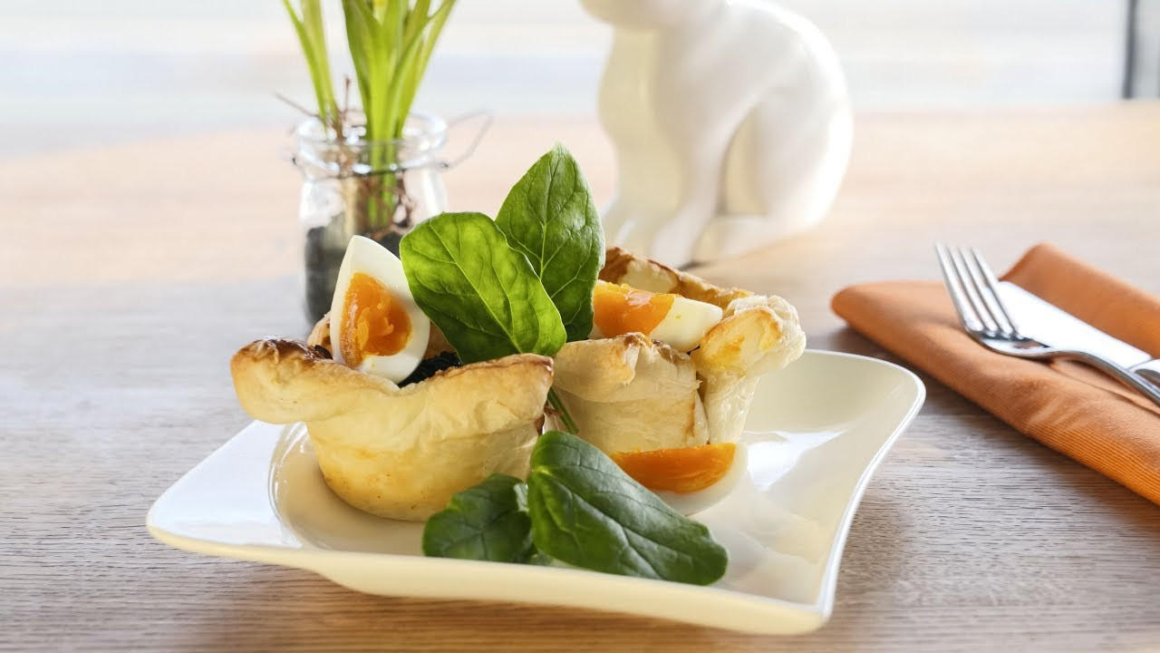 Wie werden die Blätterteignester mit hartegekochtem Ei zubereitet?