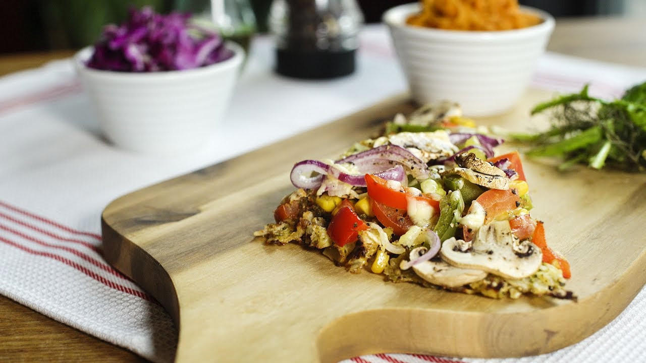 Wie bereitet man Brokkoli-Blumenkohlpizza mit buntem Belag zu?
