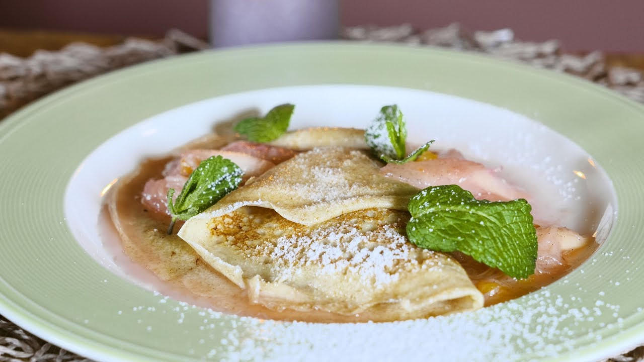 Wie bereite ich die Crêpes mit Rhabarberkompott zu?