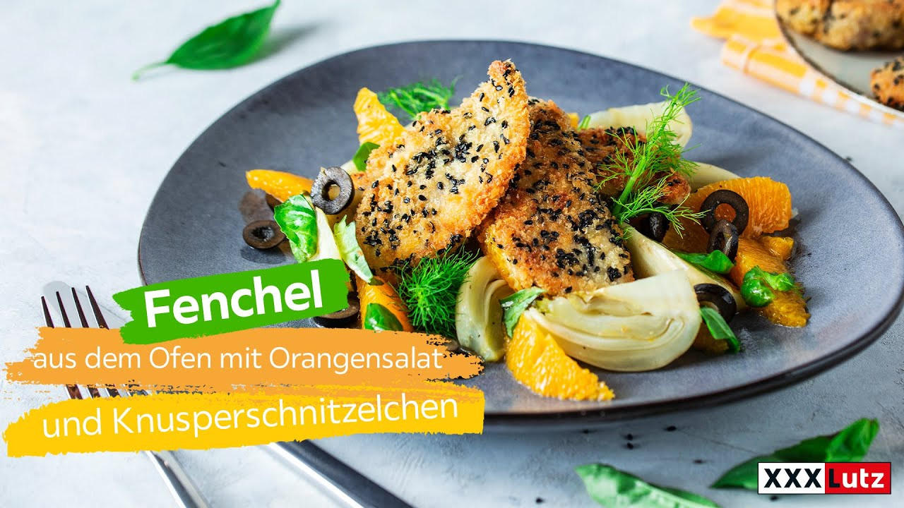 Wie bereite ich Fenchel aus dem Ofen mit Orangensalat und Knusperschnitzelchen zu?