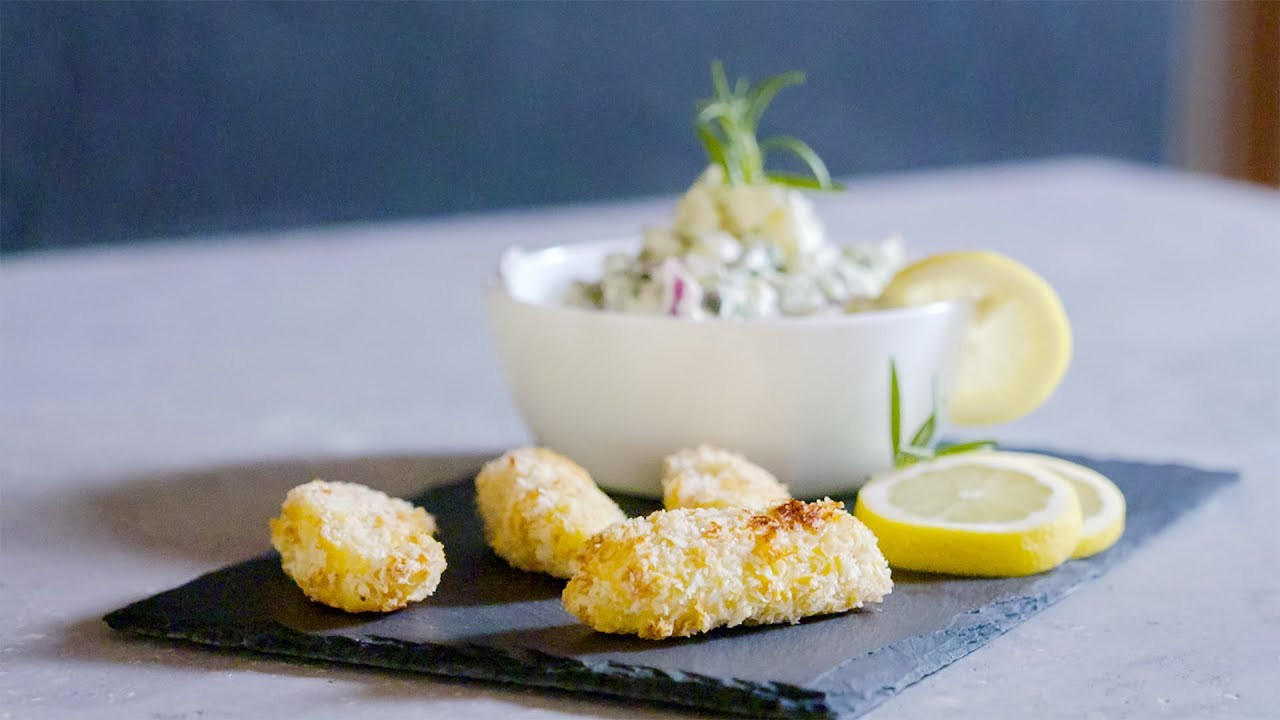 Wie bereite ich die selbstgemachten Fischstäbchen mit schnellem Kartoffelsalat zu?