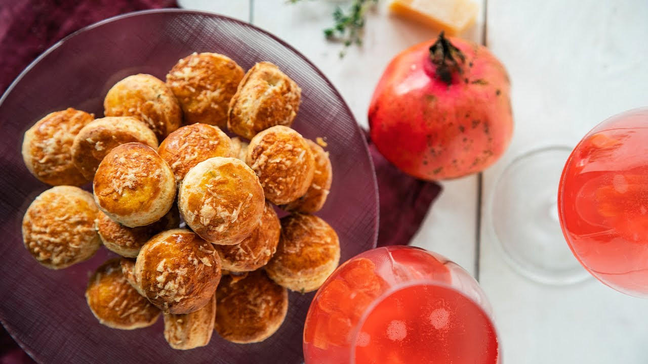 Wie bereitet man den Granatapfel-Thymian-Spritz mit pikanten Thymian-Parmesan-Scones zu?