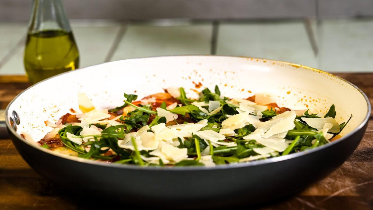 Wie bereitet man Kartoffelpizza aus der Pfanne zu?