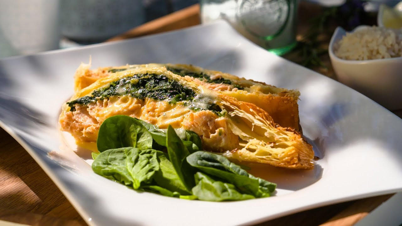 Wie wird das Lachsfilet im Blätterteig zubereitet?