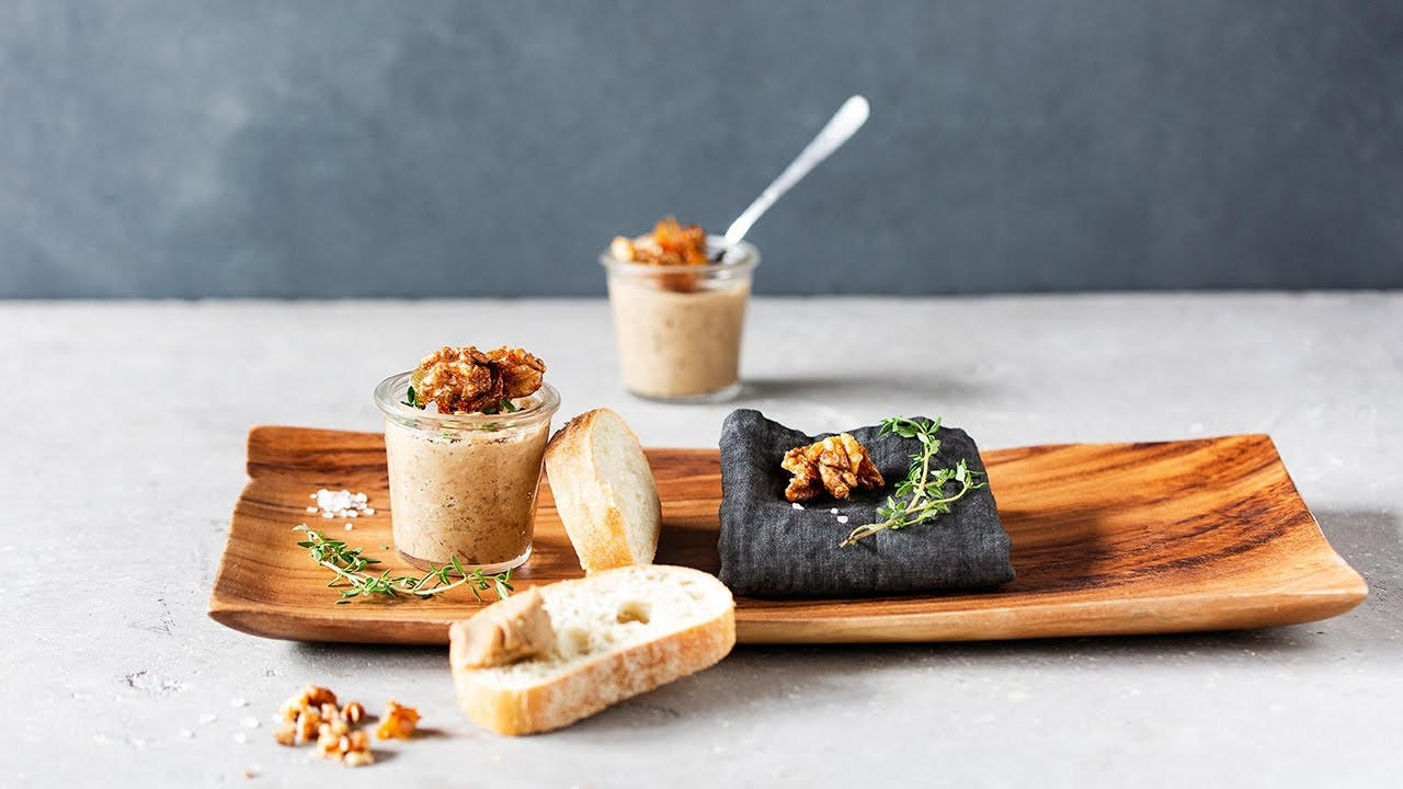 - Zum Anrichten Maronencrème auf Gläser verteilen und Walnüsse darüber geben.