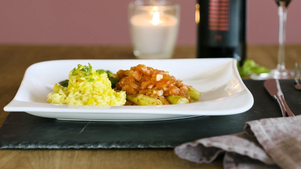 Anstelle von grünem Spargel schmeckt auch Zucchini sehr gut.