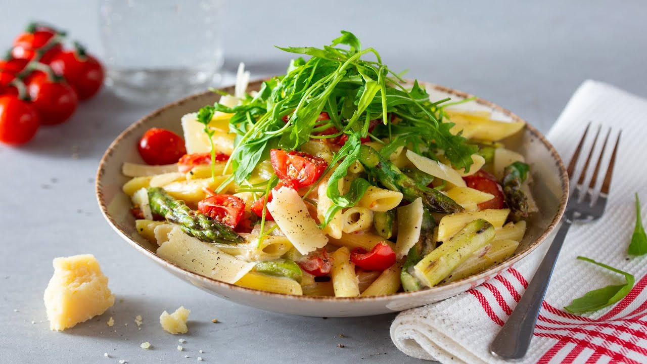 Wie bereite ich Pasta mit grünem Spargel zu?