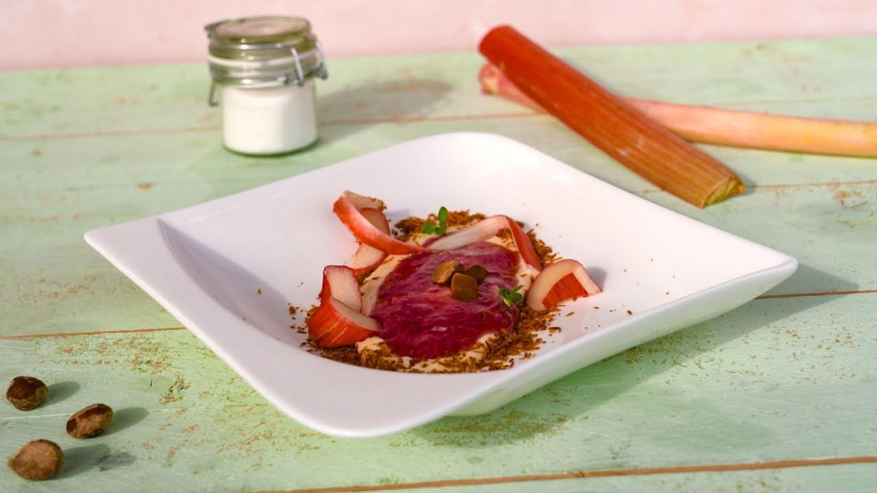 - Nun die Rhabarbergrütze mit der Sauce in tiefen Tellern oder Schälchen anrichten, mit Macadamiakernen garnieren und servieren.