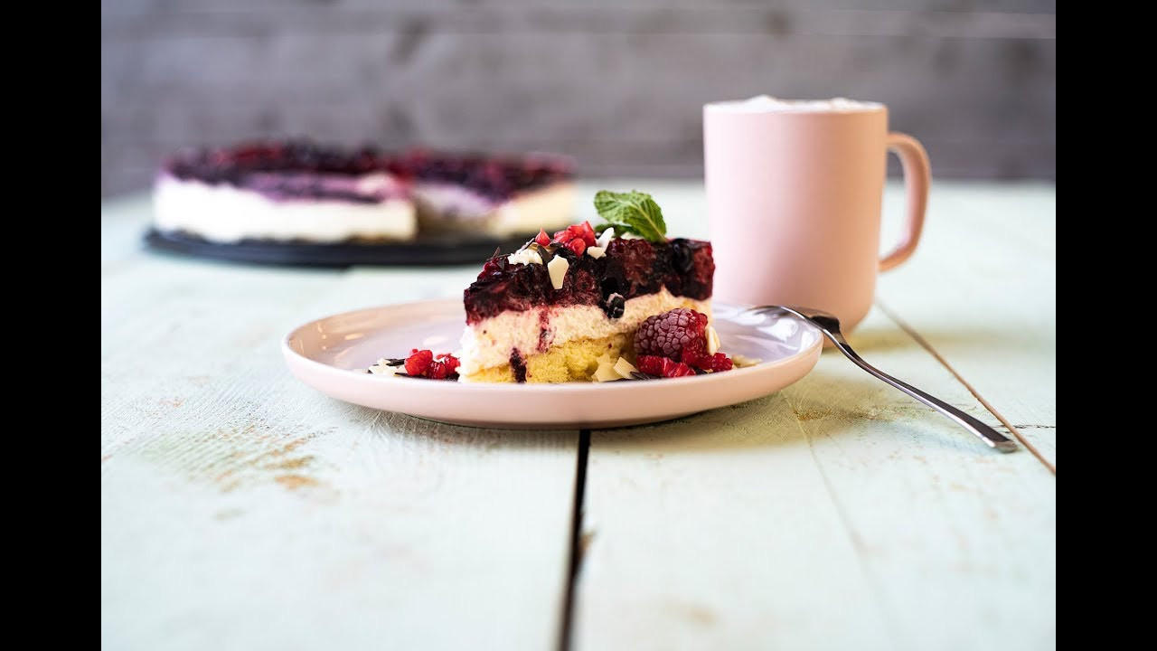 - Sobald die Creme anfängt zu gelieren, die abgekühlte Waldfruchtmasse vorsichtig darauf verteilen. Mindestens 6 Stunden, besser über Nacht, kaltstellen.