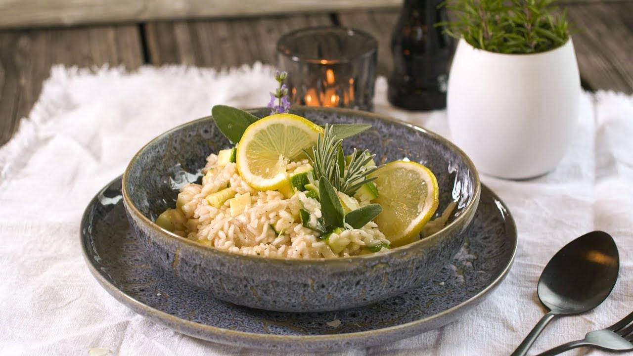 Wie bereite ich das Zucchini-Risotto mit Zitrone zu?