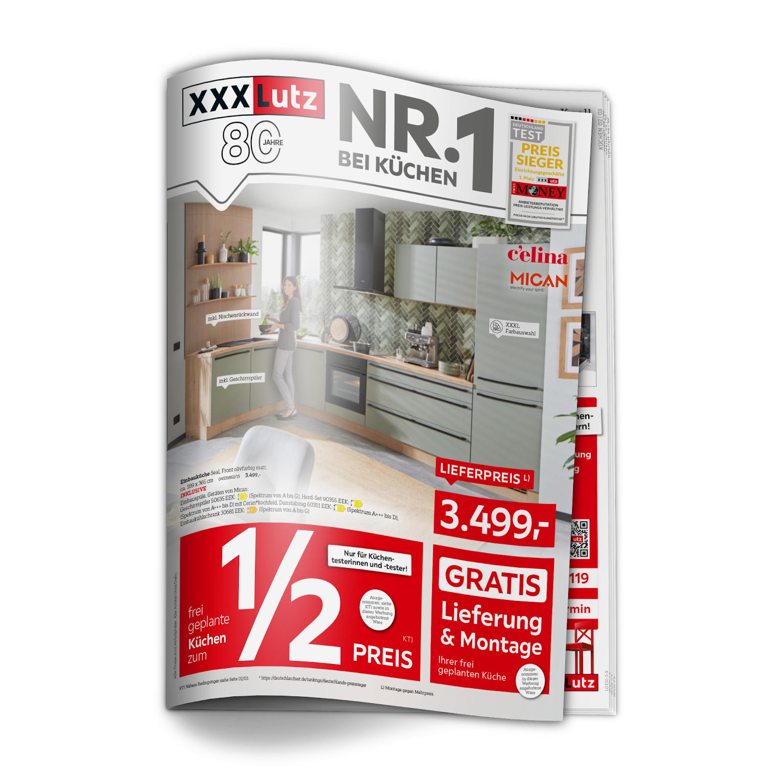 Mit enormer Vielfältigkeit zeigt die XXL-Auswahl im Lutz Küchen-Prospekt, was alles denkbar ist, wenn Sie sich eine Koch- und Backoase wünschen, die in allen Belangen überzeugt. Da sind sehenswerte Evergreens mit funktionalem Equipment genauso vertreten wie luxuriöse Traumküchen von namhaften Labels, die mit raffinierten Features aufwarten. Ihr Budget behalten Sie dabei von Anfang an konsequent im Auge, während sich ein bevorzugtes Modell herauskristallisiert.
