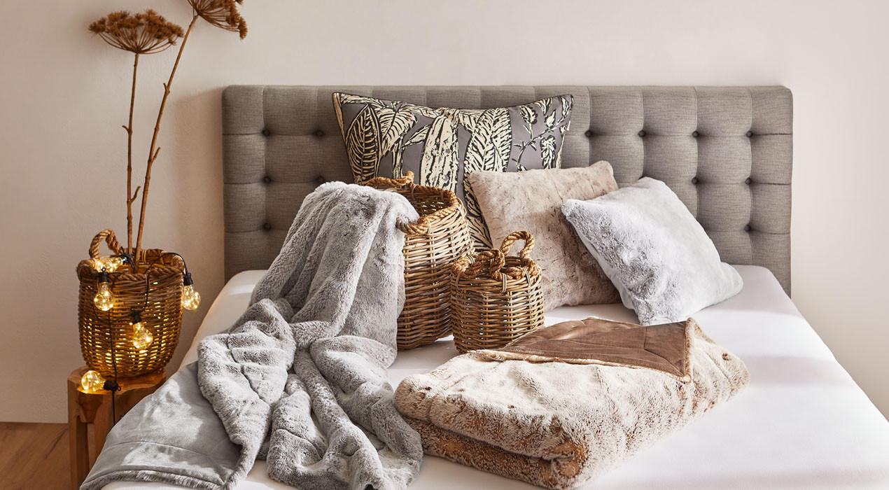 ESPRIT Bettwäsche und Textilien sowie die Artikel anderer bekannter Marken durch eine begeisternde Qualität aus. Auf dem Bett, Sofa oder Lieblingssessel unterstreichen außerdem modische Dekokissen Ihren Wohnstil, den eine Kuscheldecke wohnlich abrundet.