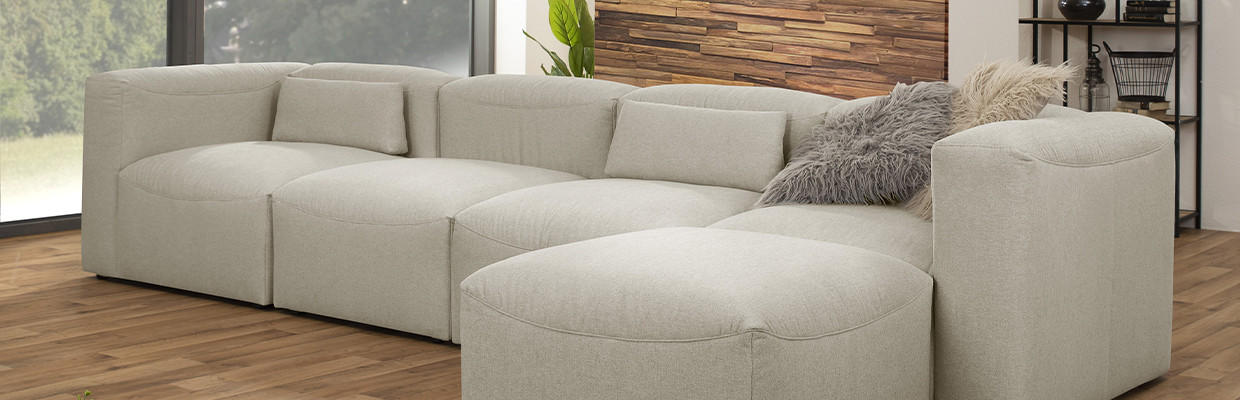 • OTTOMANE LENA Flachgewebe Creme  - Creme, Design, Kunststoff/Textil (250/73/100cm) - Max Winzer