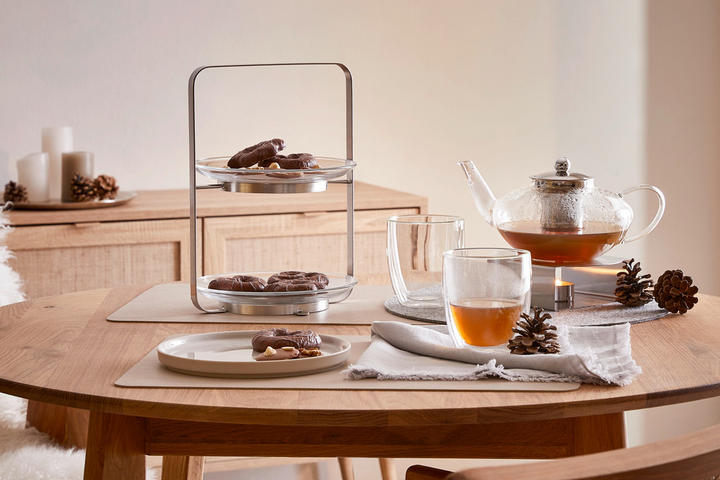 Mit einem schönen Kaffeeservice sorgen Sie für gesellige Nachmittage im Kreise von Freunden und Familie. In der Regel gehören 18 Teile zum Service, sodass 6 Personen damit bewirtet werden können. Neben Kaffee- und Untertassen sind auch Dessertteller enthalten. Als Besteck reichen kleine Löffel und Kuchengabeln auf dem Kaffeetisch. Damit Sie später nicht viel Aufwand haben, achten Sie auch bei der Kaffeestunde auf spülmaschinenfestes Geschirr und Besteck. Essen und Trinken mit Freunden macht so gleich doppelt Spaß. Statt Kaffee servieren Sie lieber einen Tee? Eine stilechte Tea Time wird es mit schönen Teetassen aus Glas und einer passenden Teekanne mit integriertem Sieb.