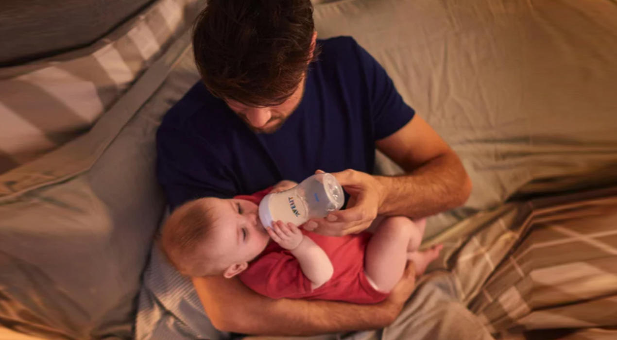 Zudem ist eine Milchpumpe praktisch. Mit einem solchen manuell oder elektrisch betriebenen Gerät lässt sich die Muttermilch leicht abpumpen, sodass der Papa den hungrigen Spatz ebenfalls füttern kann.