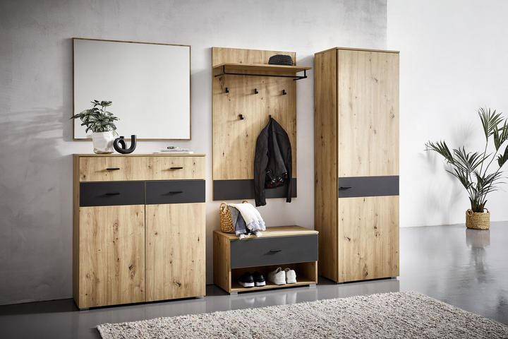- Breite x Höhe x Tiefe – in so manchem Appartement eine durchaus herausfordernde Rechnung. Aber Paneele mit Kleiderhaken, Kommoden und Spiegel gibt es natürlich separat zu kaufen. So stellen Sie Ihre höchstpersönliche, passgenaue Garderobe im harmonischen Look zusammen.