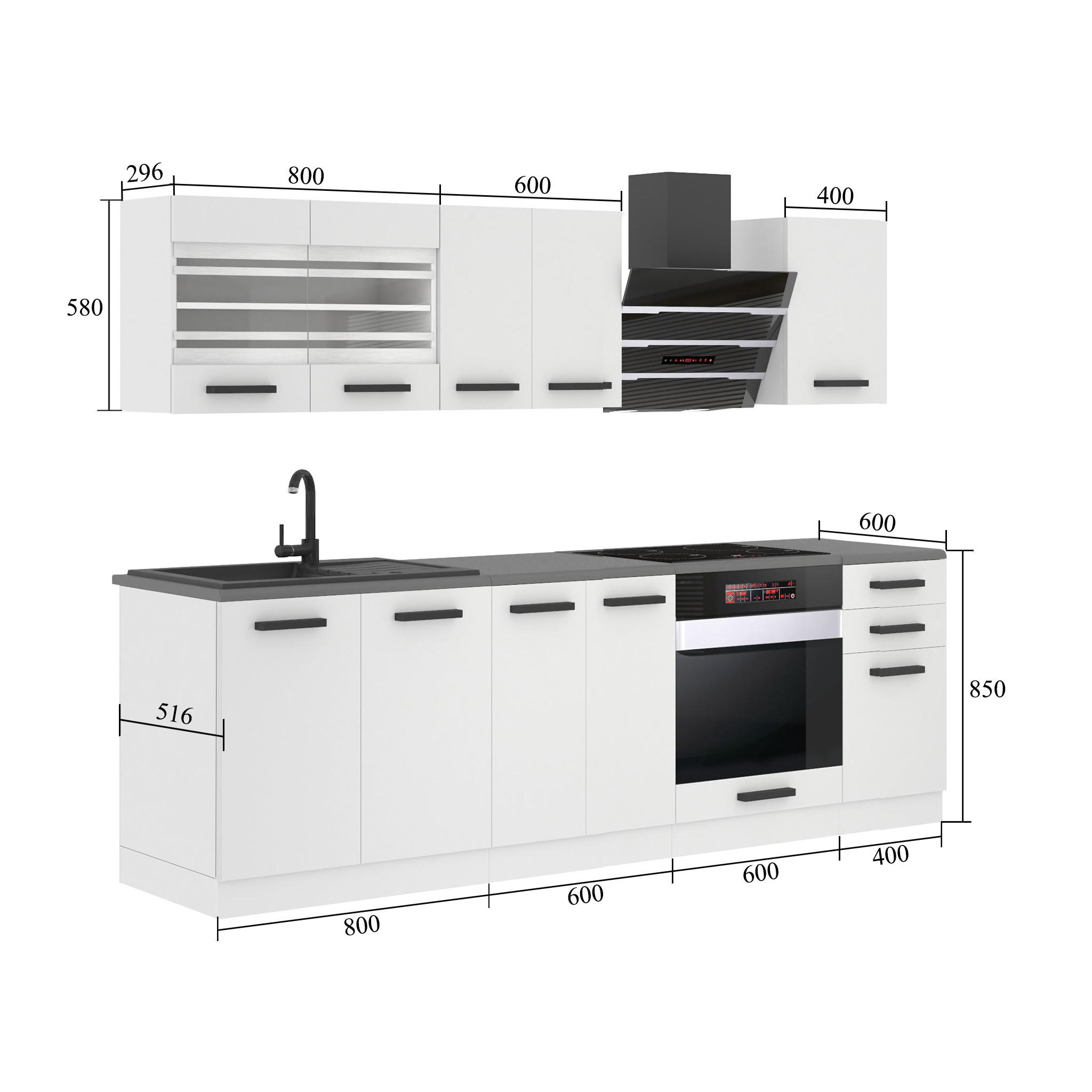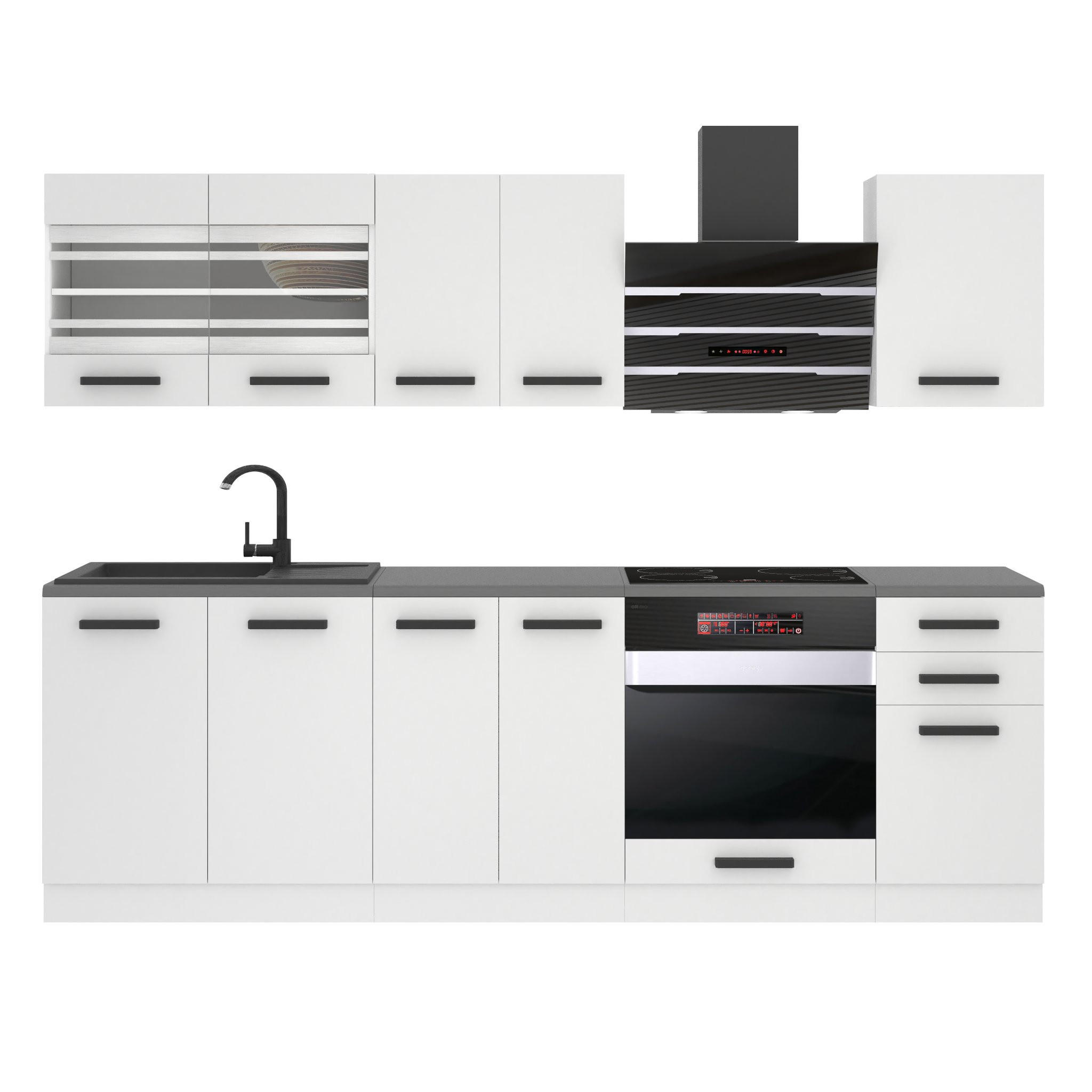 Leben Sie in einem kleinen Apartment und benötigen lediglich eine Singleküche? Oder suchen Sie für den Familienhaushalt einen großzügig bemessenen Küchenblock? Der Umfang Ihrer kulinarischen Welt hängt ganz von Ihren Wünschen und den räumlichen Gegebenheiten ab. Ist das Platzangebot überschaubar, empfiehlt sich eine Küchenzeile, die entsprechend klein und beispielsweise nur ca. 180 cm breit ist. Eine solche schlanke Version passt in so gut wie jede Studentenbude. Wer von einer geräumigeren Variante träumt, darf eine Breite von ca. 250 bis 310 cm ins Auge fassen. Mehrere Schränke halten hinter Türen Aufbewahrungsmöglichkeiten für Töpfe, Geschirr und Vorräte bereit, während in Schubladen Besteck, Messer sowie verschiedene Küchenhelfer ordentlich einsortiert auf den nächsten Einsatz warten.