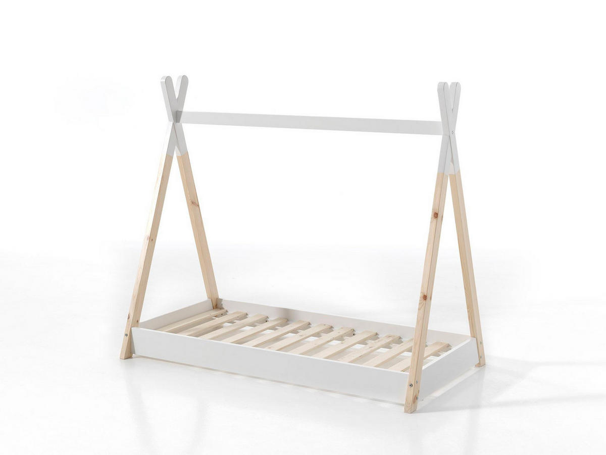 - Material: Gestell aus Kiefer massiv, teilweise weiß lackiert; Lattenrost enthalten