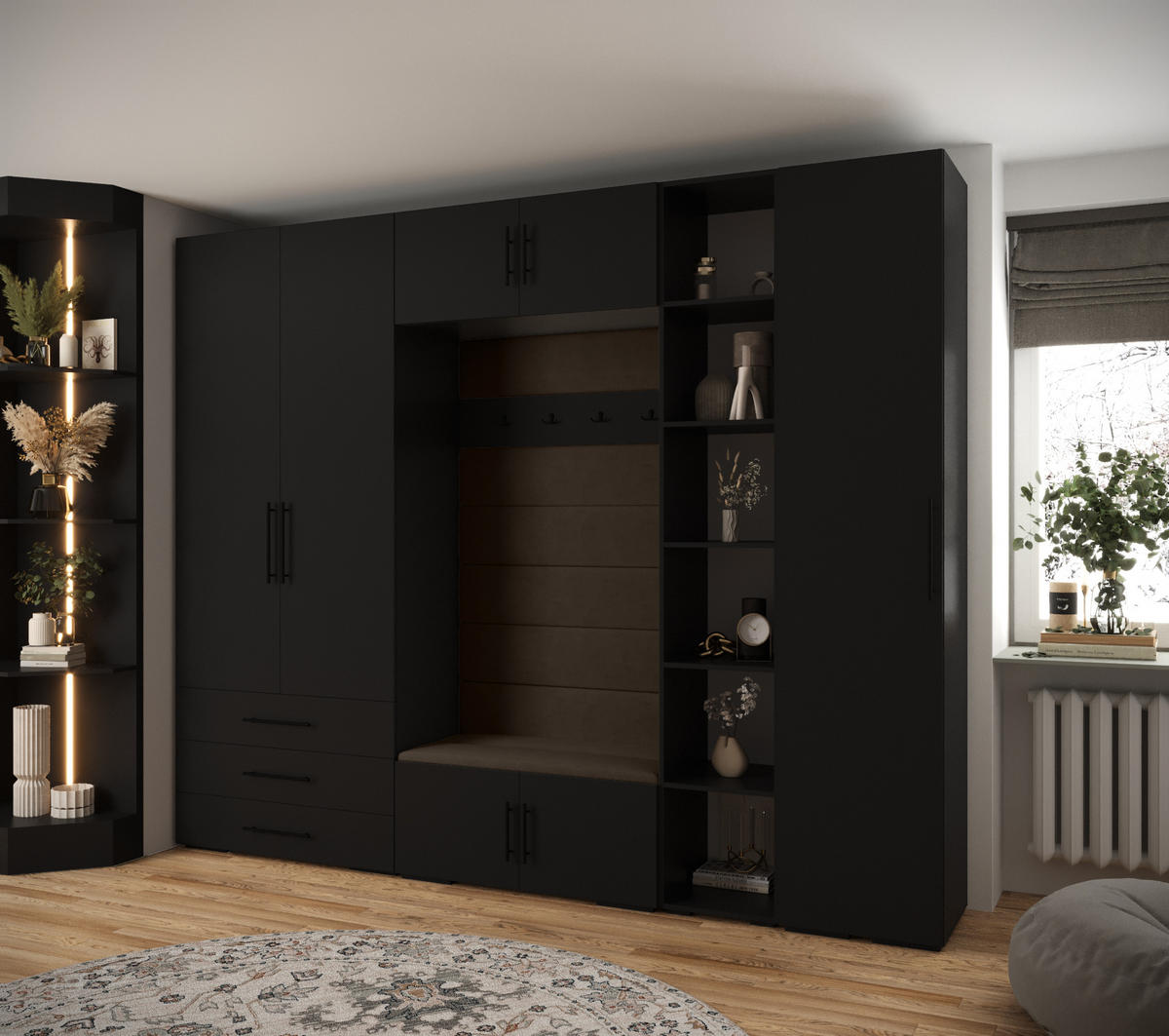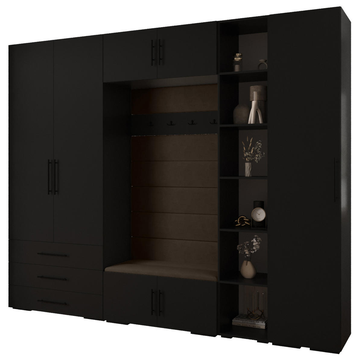 GARDEROBEN-SET 236,7/290/47Schwarz, Braun, SchwarzBreite/Höhe/Tiefe: 290/236.7/47 cm€ 1.353,‒Inkl. MwSt.