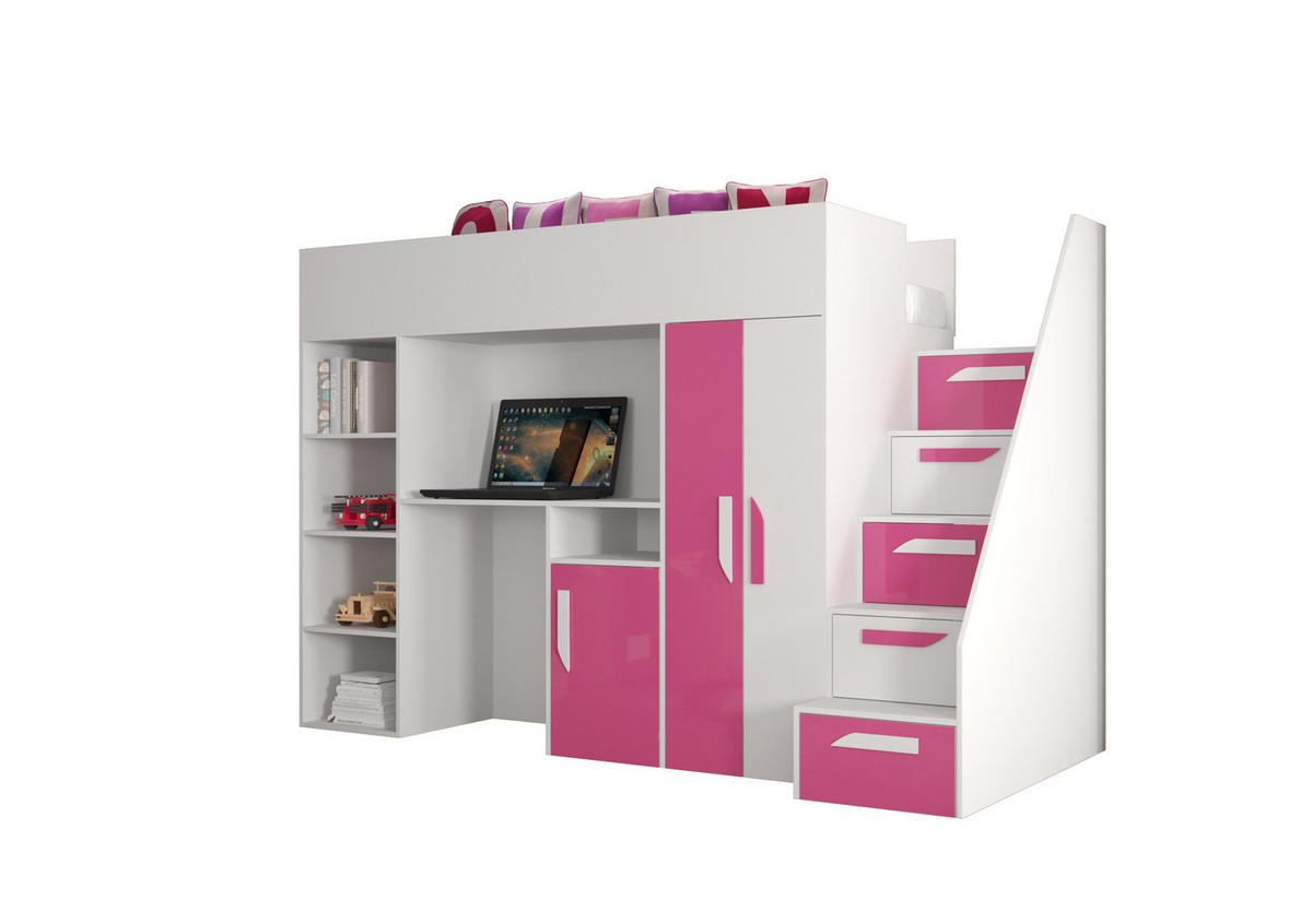 HOCHBETT mit Schreibtisch 90/200 cm - Pink/Weiß, Holz (90/200cm) - Abiks MöbelAbiks Möbel