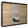 SCHWEBETÜRENSCHRANK PINA 150/205/58 cm 3-türig mit Spiegel und Schubladen Eiche Wotan
