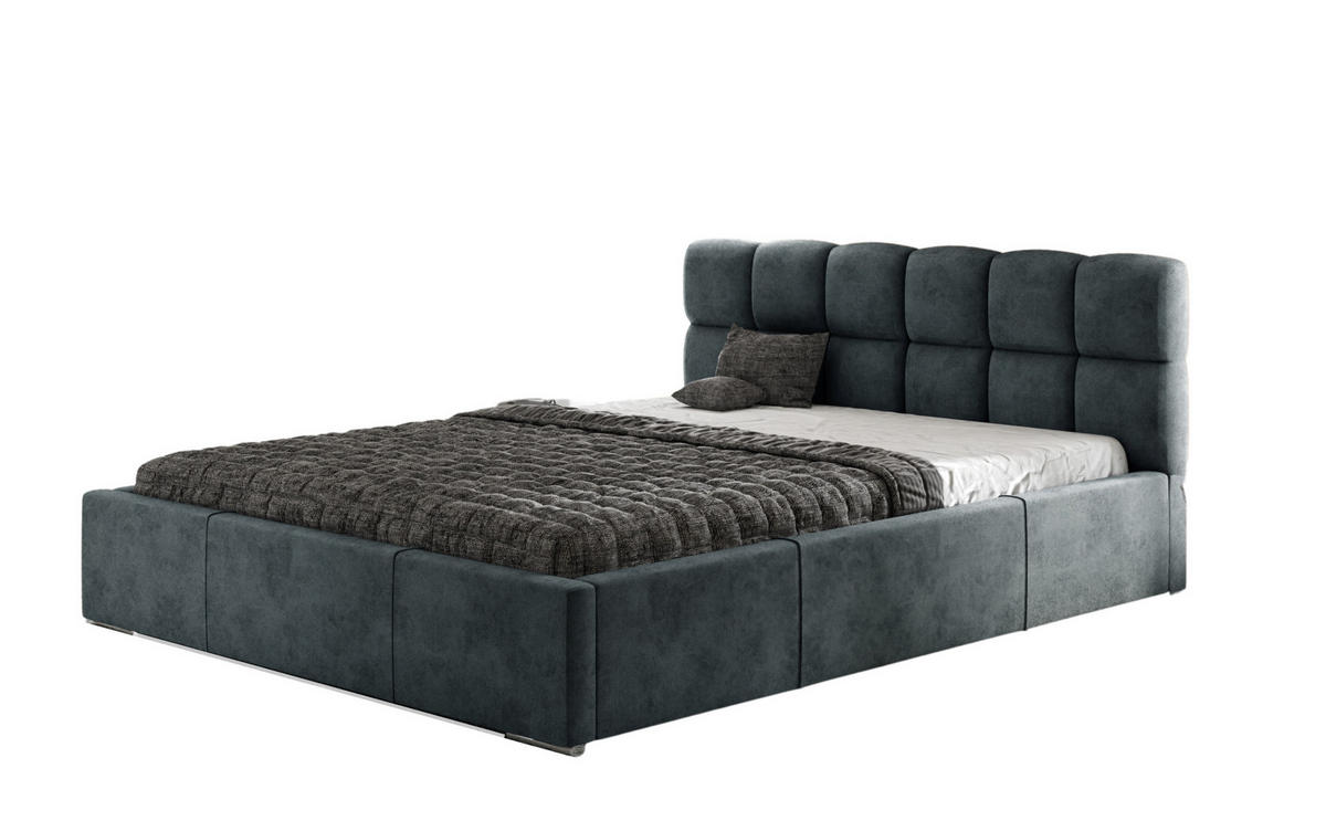 Agmat-Furniture POLSTERBETT MALTA mit Kopfteil, 200 x 200 cm, Doppelbett mit Bettkasten und Lattenrost aus Metall, Velourstoff: Dunkelgrau