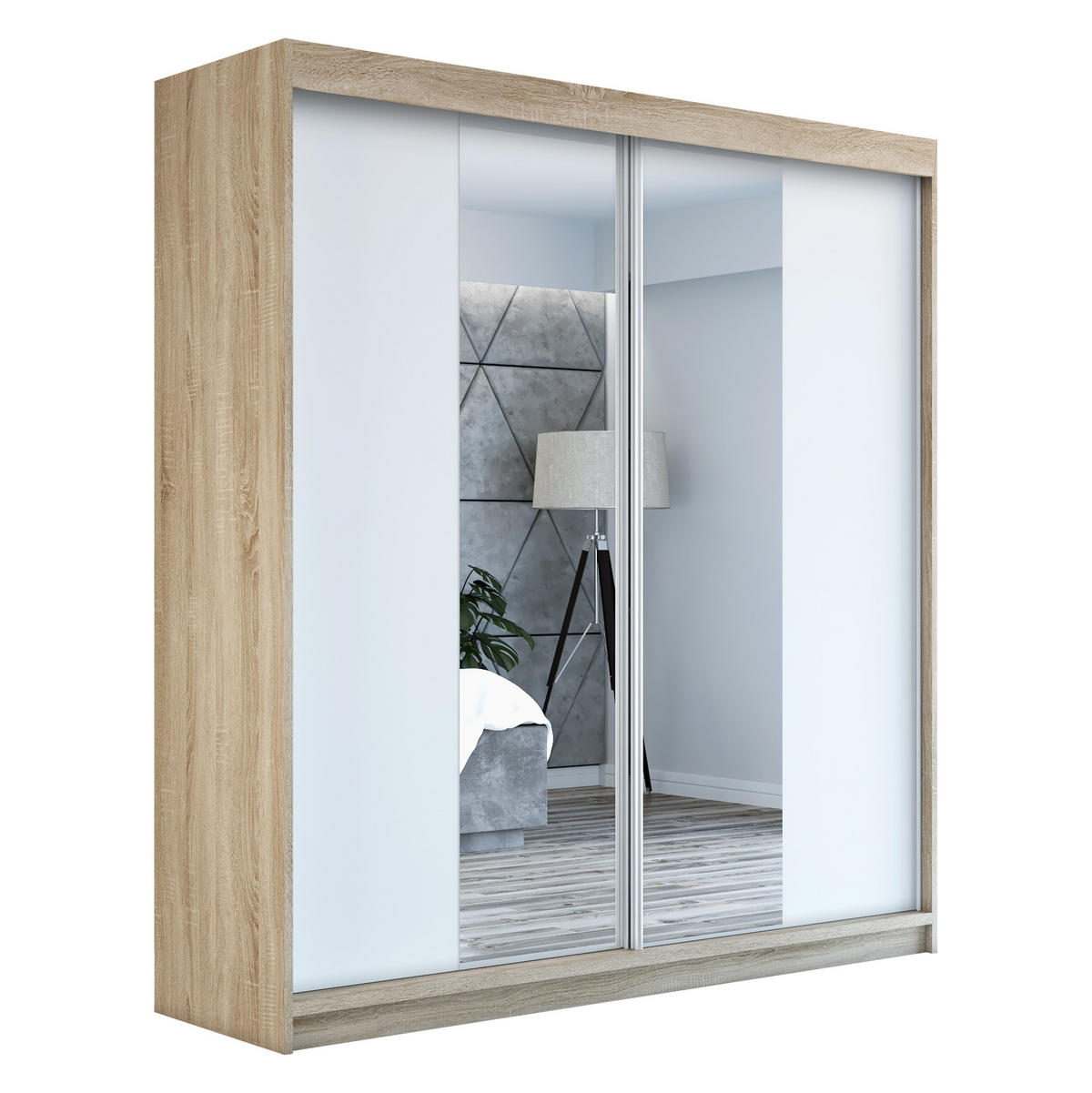 A&J MöbelLand SCHWEBETÜRENSCHRANK 120 CM NEO Farbe: Sonoma / weiß / weiß