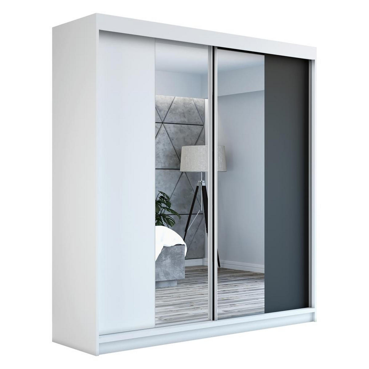 A&J MöbelLand SCHWEBETÜRENSCHRANK 160 CM NEO Farbe: Weiß / weiß / schwarz
