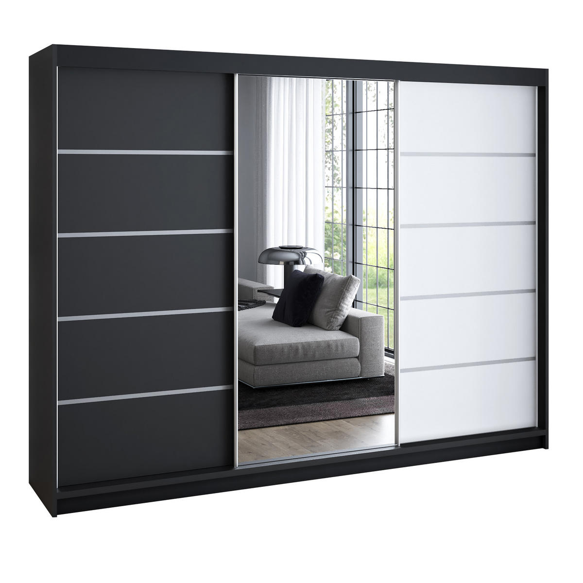 A&J MöbelLand SCHWEBETÜRENSCHRANK 200 cm VILUNO 1 Farbe: Schwarz, Weiß