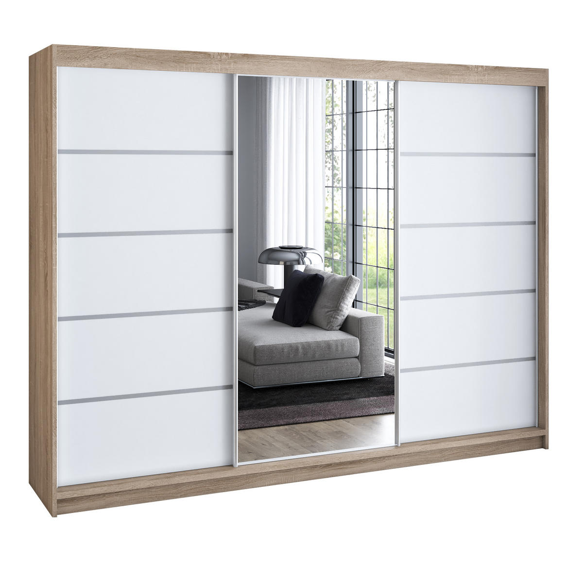 A&J MöbelLand SCHWEBETÜRENSCHRANK 200 cm VILUNO 1 Farbe: Sonoma,Weiß