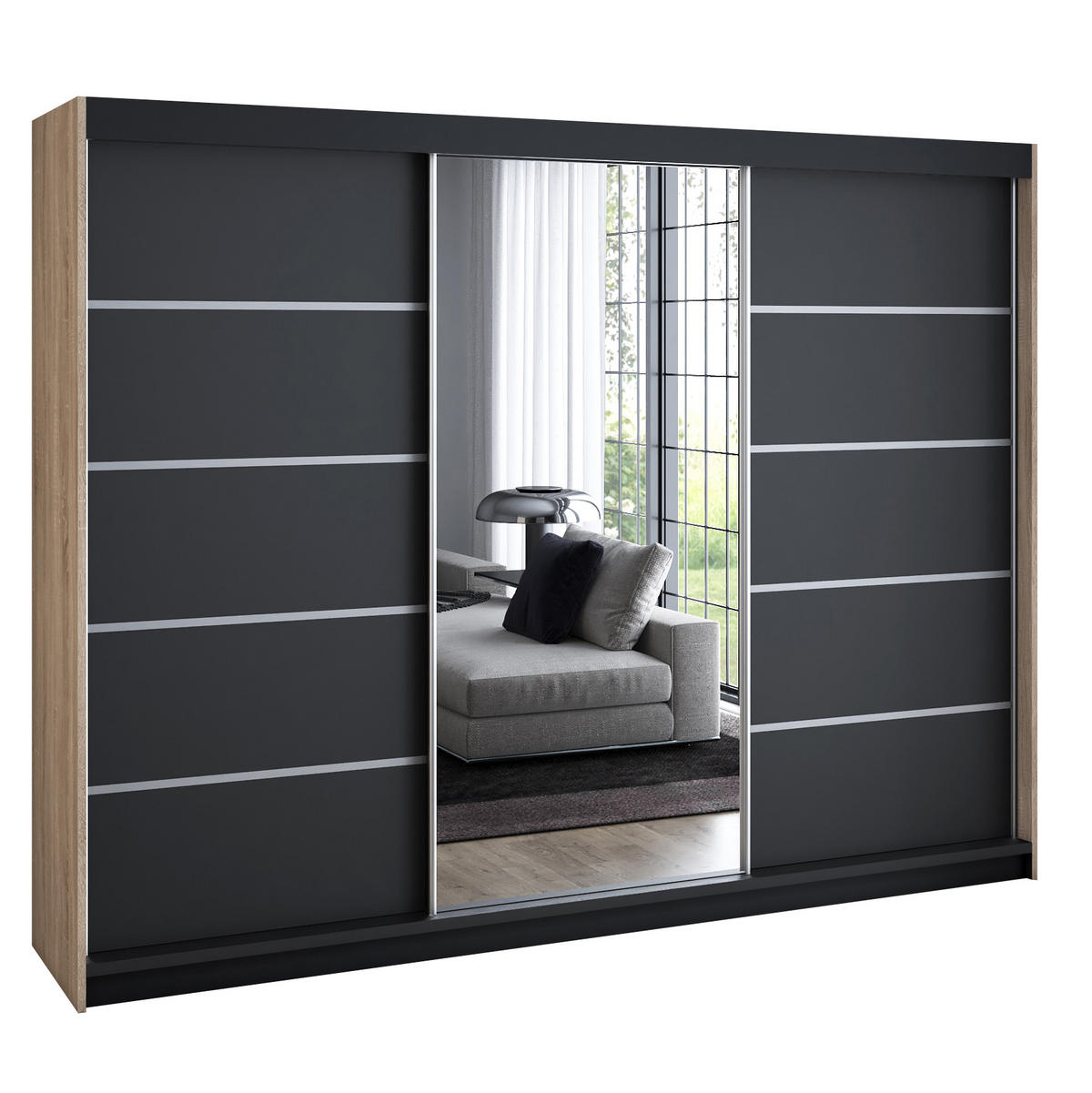 A&J MöbelLand SCHWEBETÜRENSCHRANK 200 cm VILUNO 3 Farbe: Sonoma|schwarz|schwarz