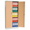 Der Aktenschrank ist komplett aus Metall gefertigt und wurde zusätzlich mit ansprechenden Holztüren ausgestattet. Die Produkte der Beetle Serie sind sind sowohl für den privaten als auch für den gewerblichen Einsatz bestens geeignet. Die Oberflächen sind aus elektrostatisch pulverbeschichtetem Metall hergestellt und dadurch besonders robust. Die vier Fachböden sind frei verstellbar. Bei gleichmäßig verteilter Last, beträgt die Traglast pro Ebene 45 kg. So bietet der Metallschrank auf insgesamt fünf Ordnerhöhen reichlich Stauraum. Der Schrank ist zusätzlich abschließbar und es werden zwei Schlüssel mitgeliefert.