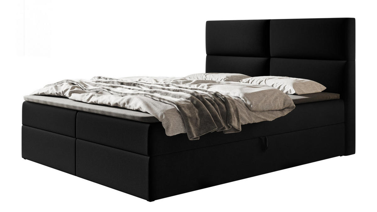 Der praktische Bettkasten - Stauraum für Ordnung und Funktionalität:Unser Boxspringbett verfügt über einen geräumigen Bettkasten, der in zwei separate Fächer unterteilt ist. Mit Hilfe von Federhebern werden die Bettkästen seitlich geöffnet, um Ihnen einen bequemen Zugang zu Ihrem Stauraum zu ermöglichen. Hier können Sie Bettwäsche, Kissen oder andere GegenständeUltimativer Komfort mit der Bonell-Matratze:Erleben Sie traumhafte Nächte mit unserer hochwertigen Bonell-Matratze. Mit einer Höhe von 19 bietet sie Ihnen den perfekten Mix aus Unterstützung und Komfort. Die Bonellfedern sorgen für eine optimale Körperanpassung und eine angenehme Druckentlastung.