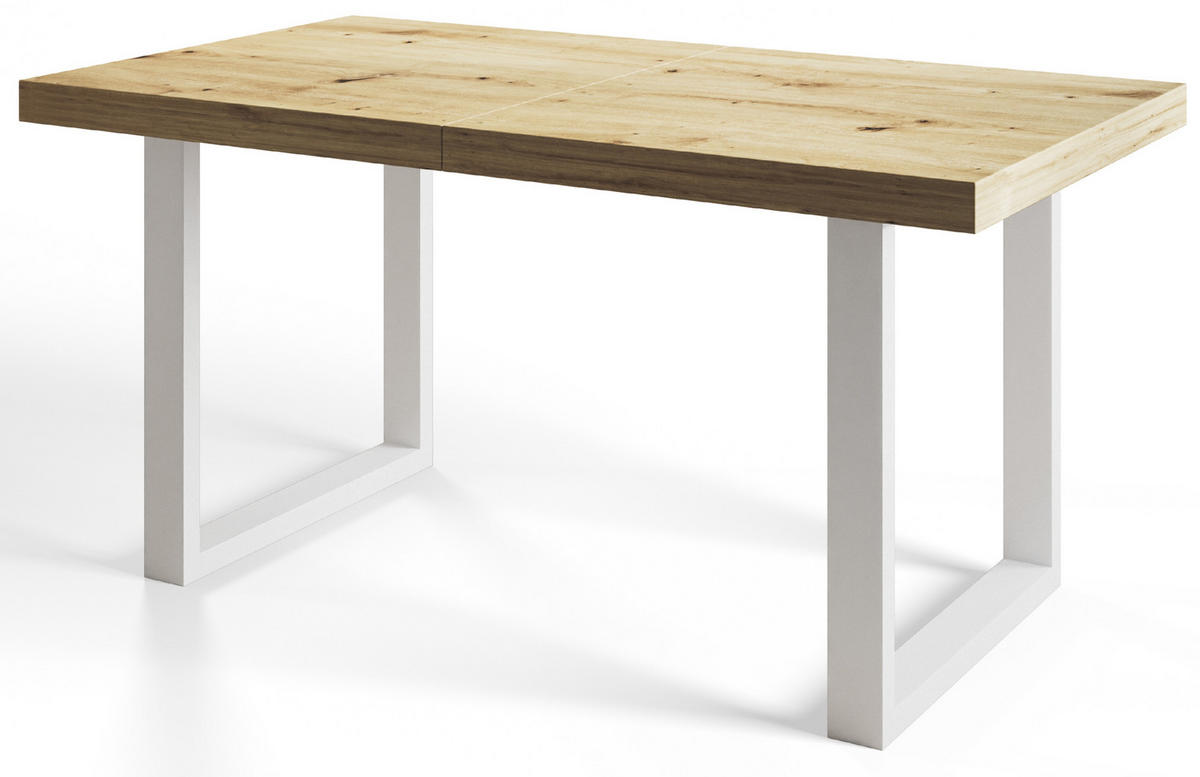INDUSTRIELLER Esszimmertisch LOFT-U, ausziehbarer Tisch, Größe: 140-240X80X77 cm, Wohnzimmertisch Farbe: ARTISAN, mit Metallbeinen in Farbe Weiß - Hellbraun/Weiß, Holzwerkstoff (140/80/77cm) - Alpi-MöbelAlpi-Möbel