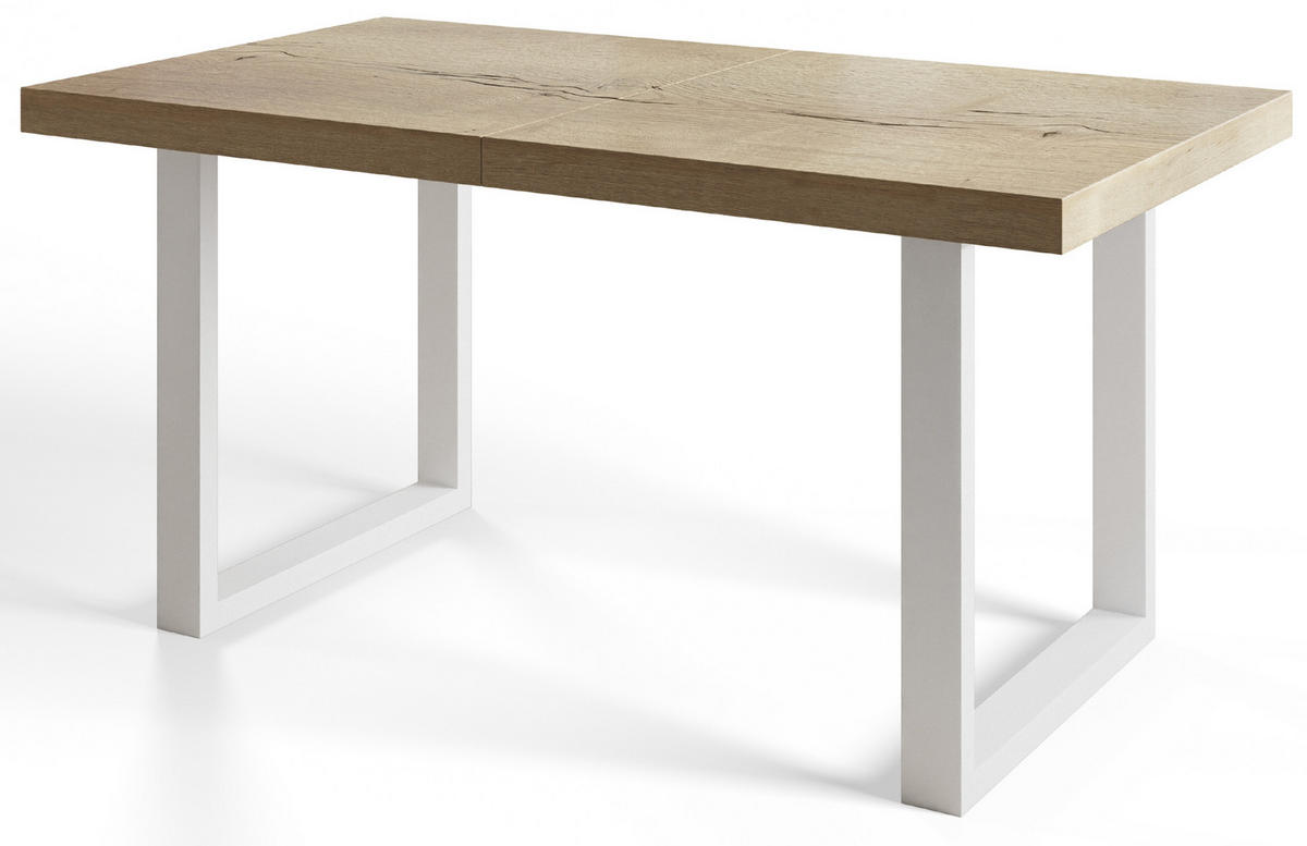 INDUSTRIELLER Esszimmertisch LOFT-U, ausziehbarer Tisch, Größe: 180-280X90X77 cm, Wohnzimmertisch Farbe: HALIFAX, mit Metallbeinen in Farbe Weiß - Weiß/Naturfarben, Holzwerkstoff (180/90/77cm) - Alpi-MöbelAlpi-Möbel