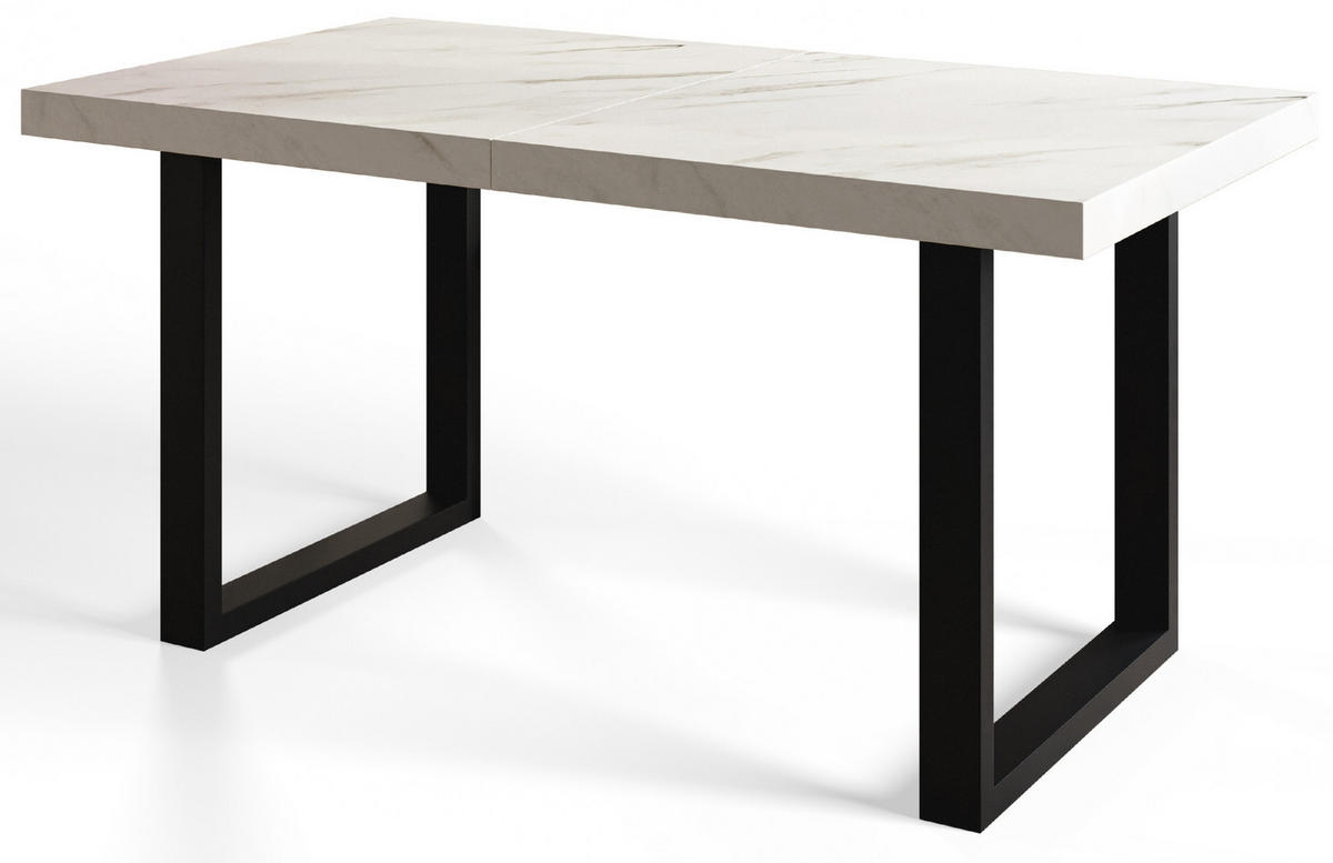 Alpi-Möbel INDUSTRIELLER Esszimmertisch LOFT-U, Größe: 140X80X77 cm, Wohnzimmertisch Farbe: MARMUR, mit Metallbeinen in Farbe Schwarz