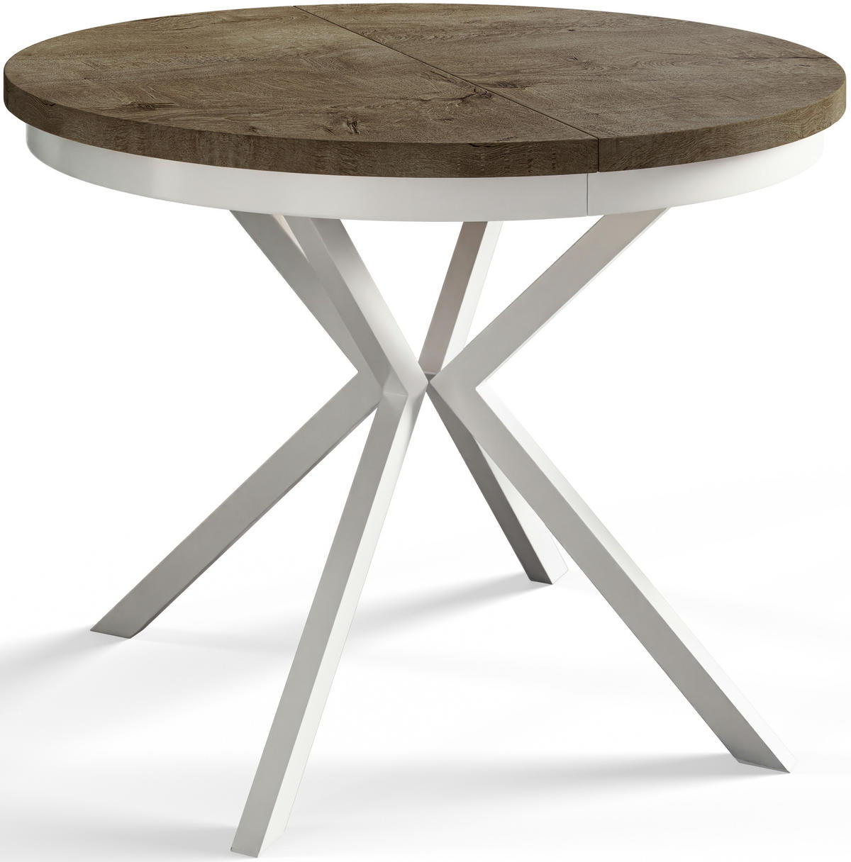 RUNDER Esszimmertisch BERGO, ausziehbarer Tisch Durchmesser: 100 cm/180 cm, Wohnzimmertisch Farbe: Grau, mit Metallbeinen in Farbe Weiß - Dunkelbraun/Weiß, Holzwerkstoff (100/100/76cm) - Alpi-MöbelAlpi-Möbel