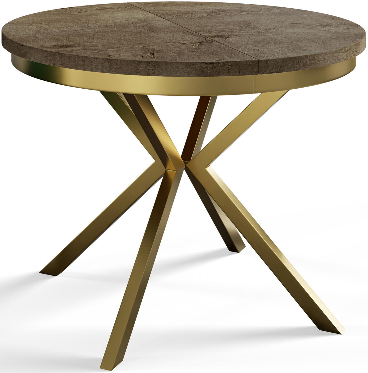 RUNDER Esszimmertisch BERGO, ausziehbarer Tisch Durchmesser: 120 cm/200 cm, Wohnzimmertisch Farbe: Grau, mit Metallbeinen in Farbe Gold - Dunkelbraun/Goldfarben, Holzwerkstoff (120/120/76cm) - Alpi-MöbelAlpi-Möbel