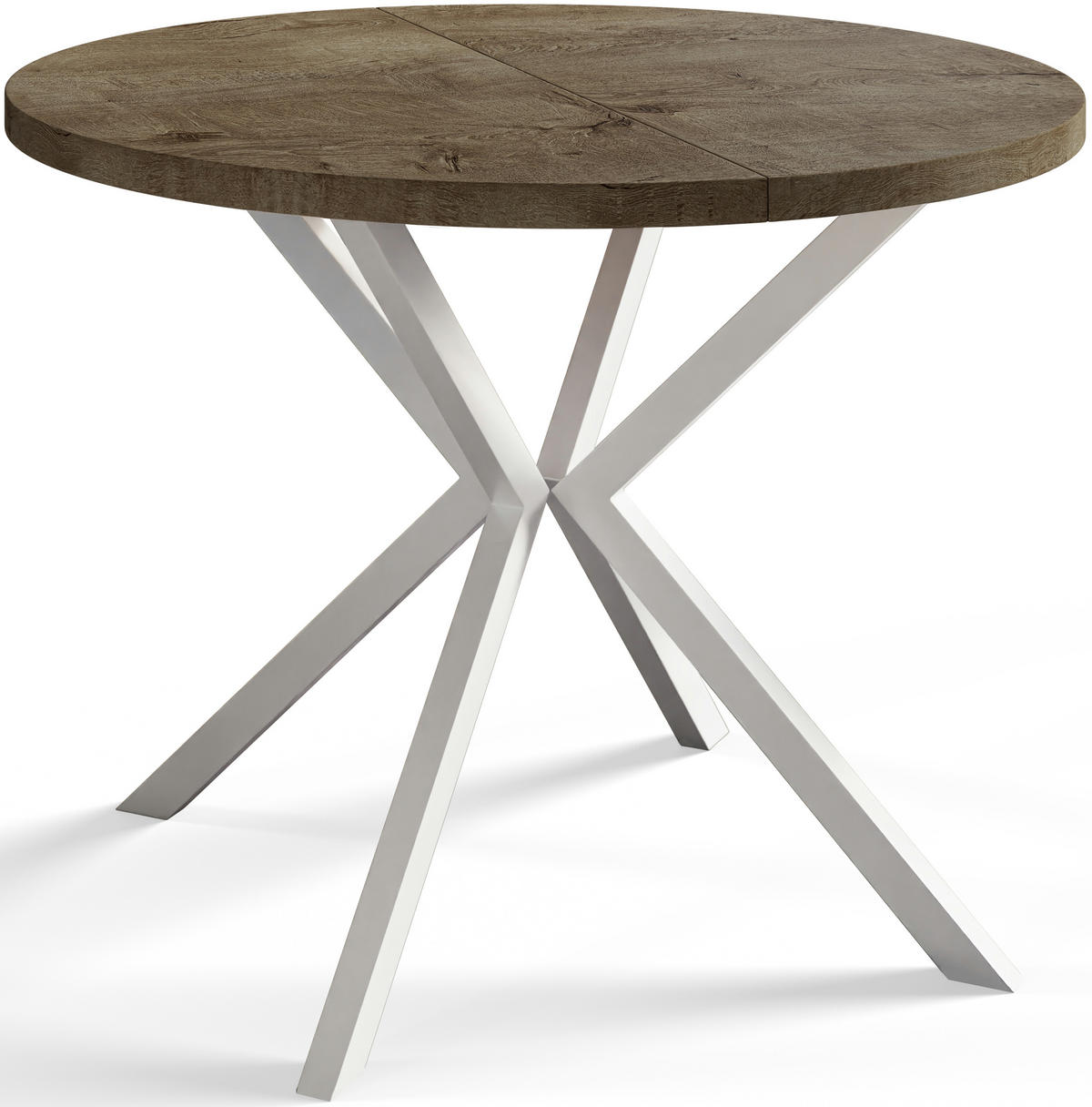 RUNDER Esszimmertisch LOFT LITEN, ausziehbarer Tisch Durchmesser: 120 cm/200 cm, Wohnzimmertisch Farbe: Grau, mit Metallbeinen in Farbe Weiß - Dunkelbraun/Weiß, Holzwerkstoff (120/120/76cm) - Alpi-MöbelAlpi-Möbel