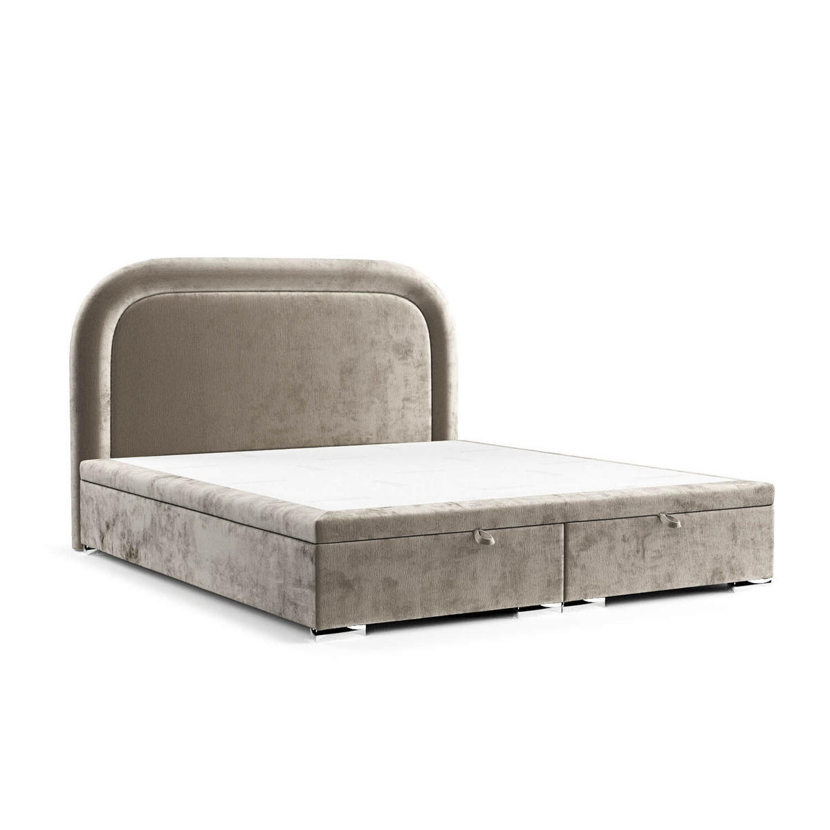 Das Polsterbett HARMONY mit Stauraum ist ein außergewöhnliches Möbelstück, das dank seines einzigartigen Designs zweifellos die Aufmerksamkeit auf sich zieht. Es erfüllt nicht nur eine praktische Funktion, sondern ist auch eine schöne Dekoration, die jedem Schlafzimmer Charakter und Charme verleiht. Eines der Hauptelemente, die dieses Bett auszeichnen, ist das breite und abgerundete Kopfteil mit präzisen Nähten. Diese besonderen Details tragen nicht nur zur Ästhetik bei, sondern vermitteln auch den Eindruck von Gemütlichkeit und fördern so die Entspannung und eine glückliche Erholung. Der Sockel des Bettes ist eine robuste Truhe mit zwei Fächern, die sich von vorne öffnen lassen und mit einer Höhe von 27 cm praktischen Stauraum bieten. Dies erleichtert nicht nur die Ordnung im Schlafzimmer, sondern ermöglicht auch eine optimale Nutzung des vorhandenen Platzes.