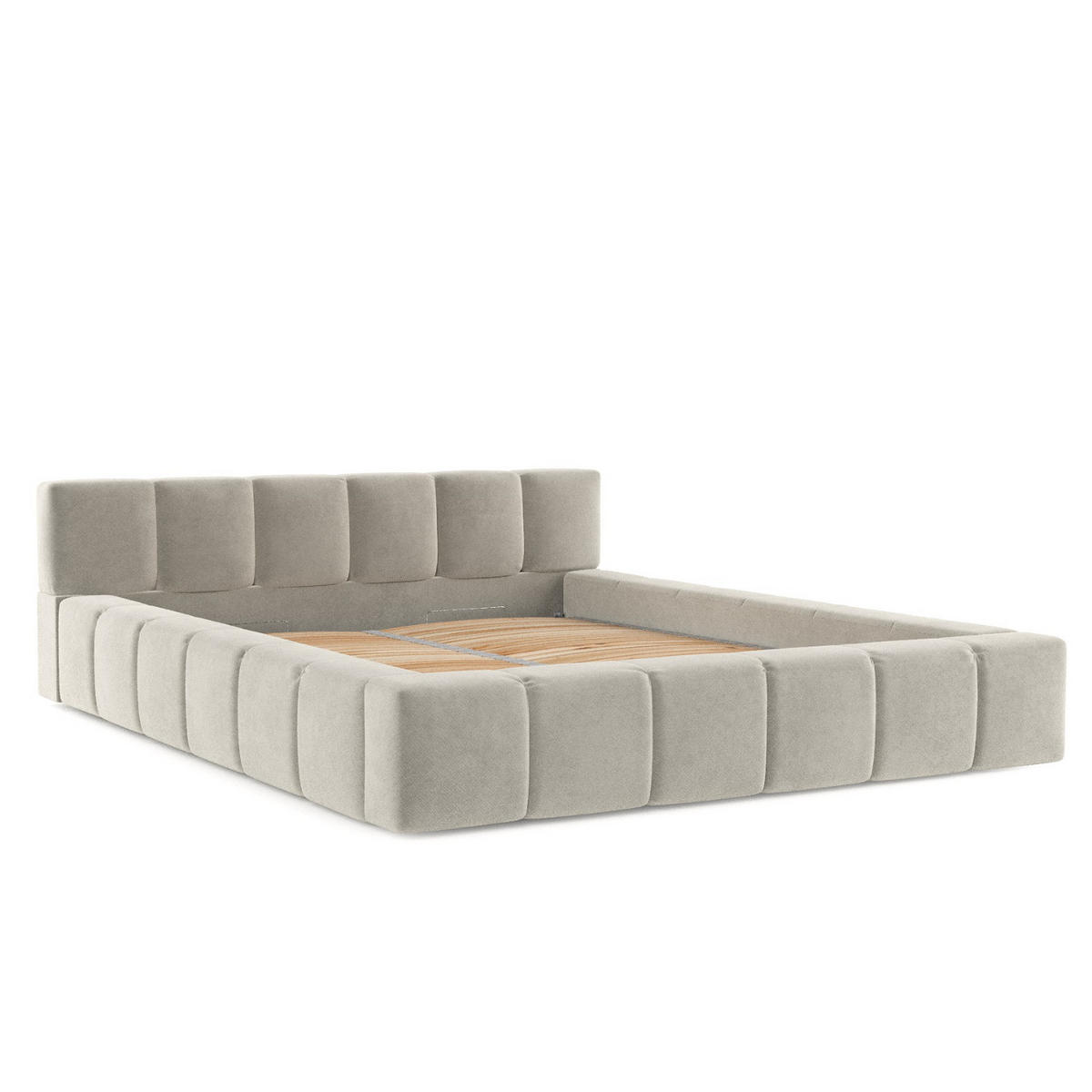 Das Polsterbett MILOS ist ein Vorschlag für Liebhaber von modernem Design und schlichten, eleganten Formen. Sein Kopfteil ist mit geometrischen Nähten verziert, die markante Quadrate bilden, die in einer einzigen Reihe angeordnet sind, was ihm einen subtilen, aber stilvollen Look verleiht. Die gleichen Details zieren auch den Bettrahmen und unterstreichen seine harmonische und moderne Ästhetik.