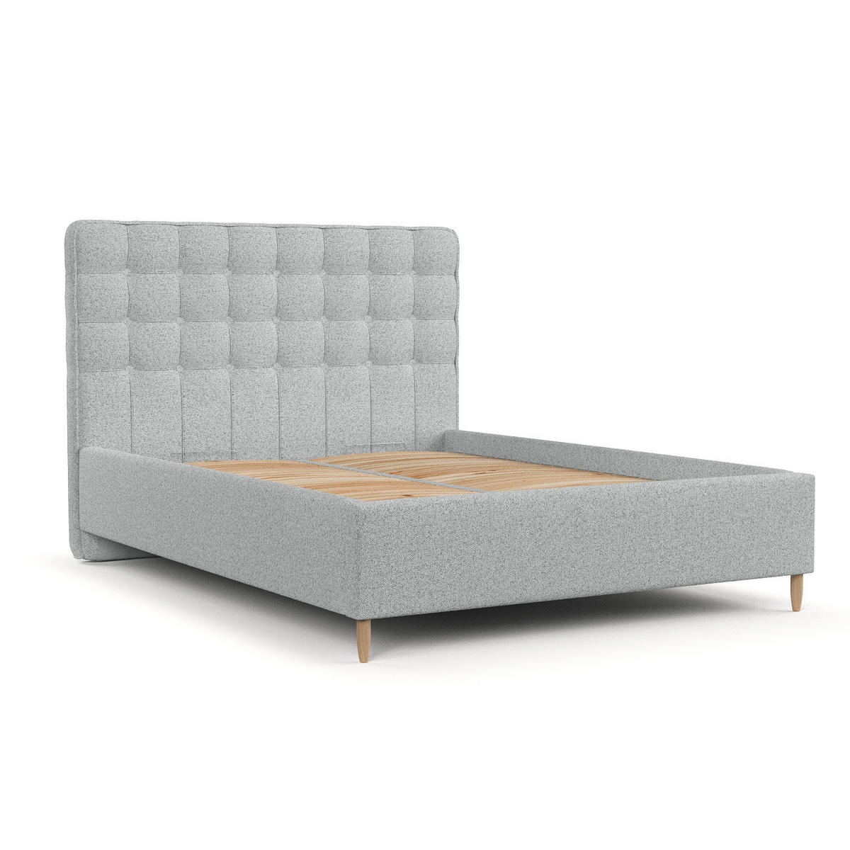 Die Holzbeine verleihen dem Bett einen Hauch von Leichtigkeit und unterstreichen den modernen Charakter.