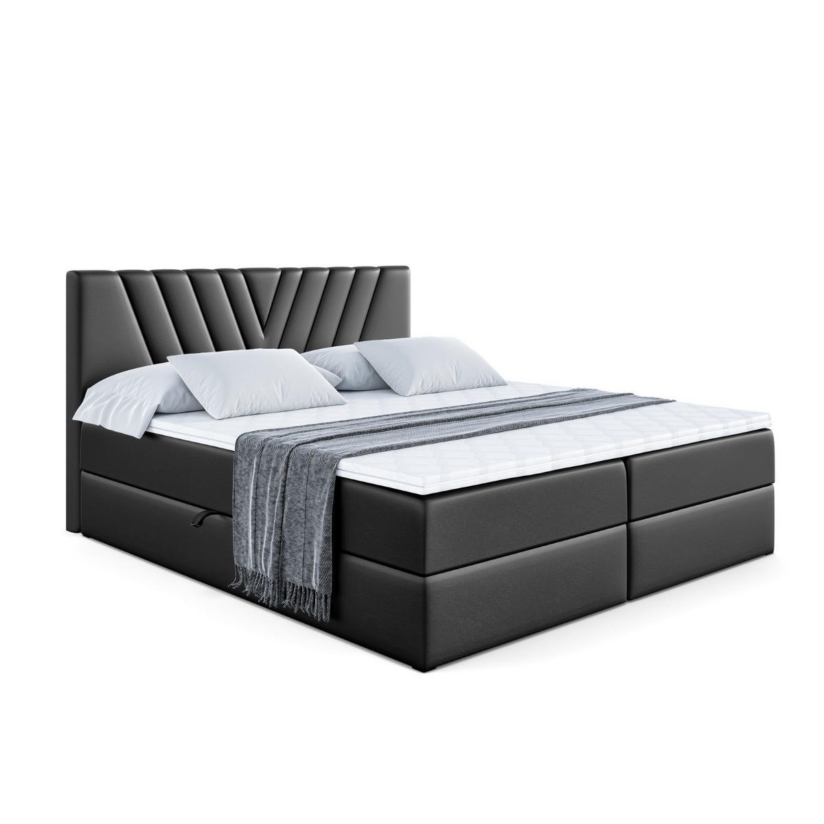 BOXBETT mit Matratze H3 und Lattenrost - ERNINA - 200x200 cm Schwarz Hochglanz - Schwarz Hochglanz, Holzwerkstoff (200/200cm) - ALTDECOR