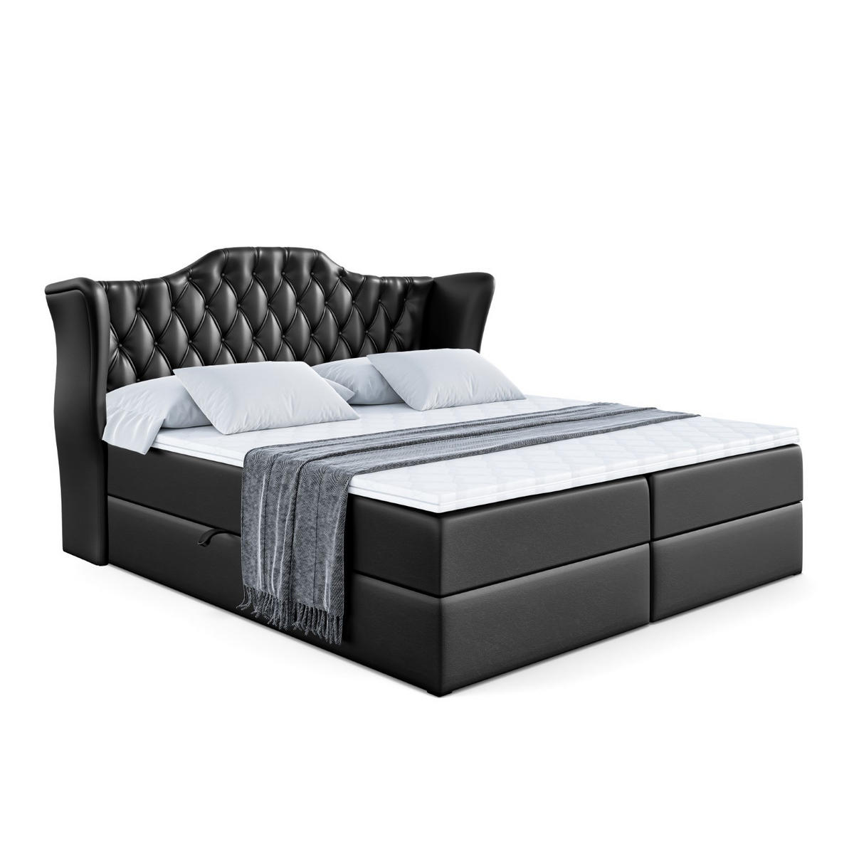 BOXBETT mit Matratze H3 und Lattenrost - VILA - 120x200 cm Schwarz Hochglanz - Schwarz Hochglanz, Holzwerkstoff (120/200cm) - ALTDECORALTDECOR