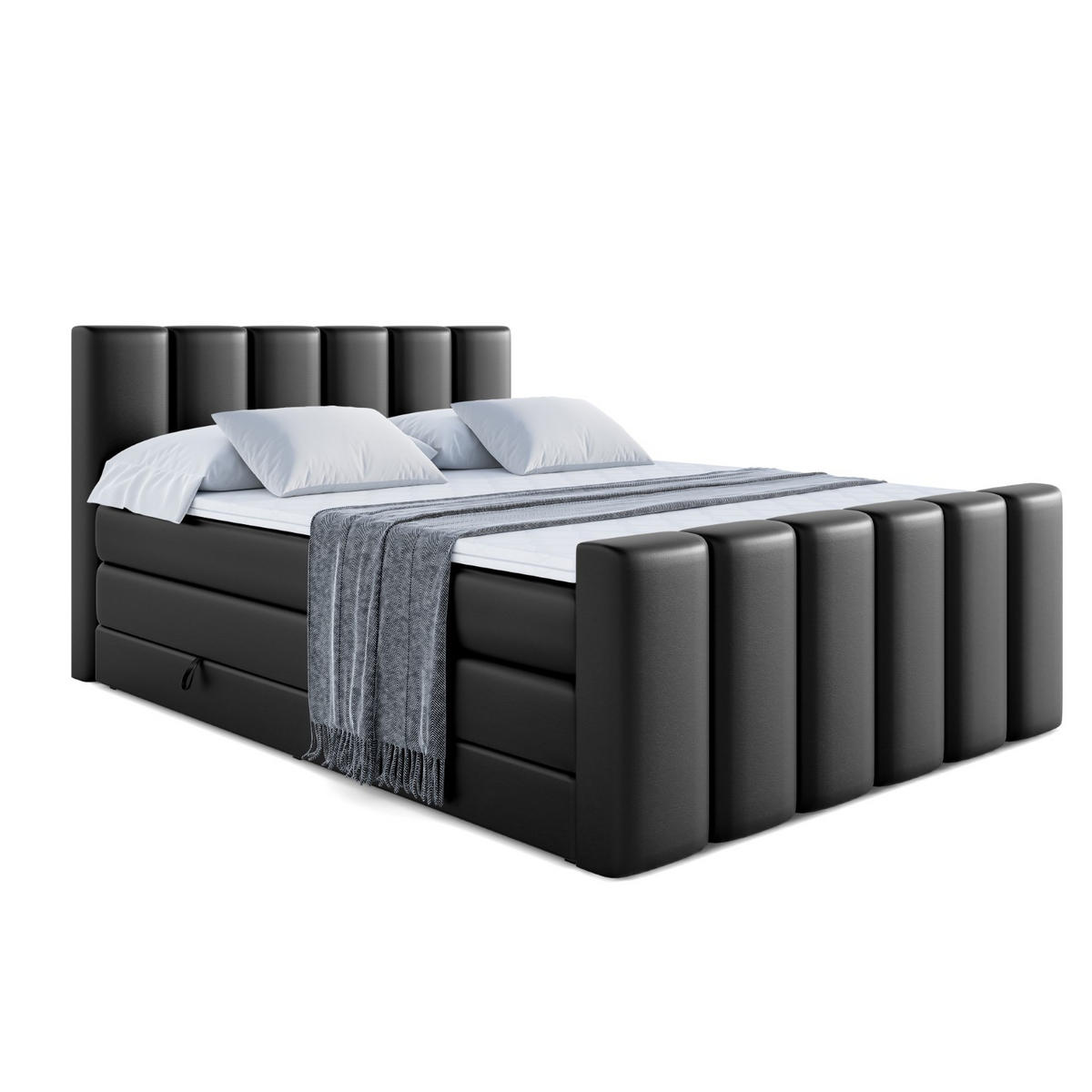 ALTDECOR BOXSPRINGBETT BOXI1-Z KING - 140x200 - H3/H4 - Schwarz Hochglanz